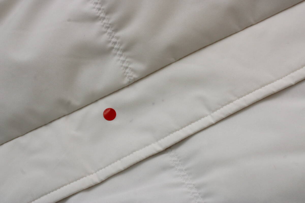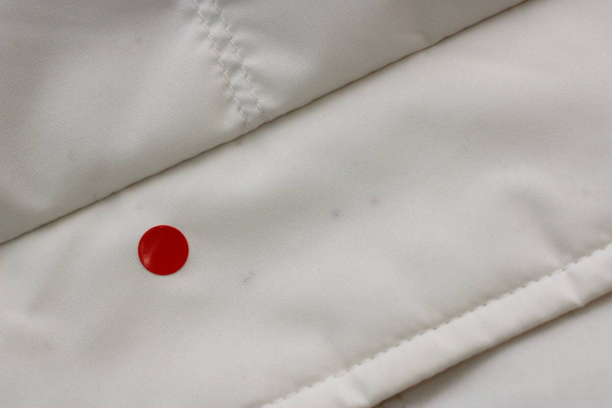 下から2番目と3番目のボタンの間あたりに汚れがあります。