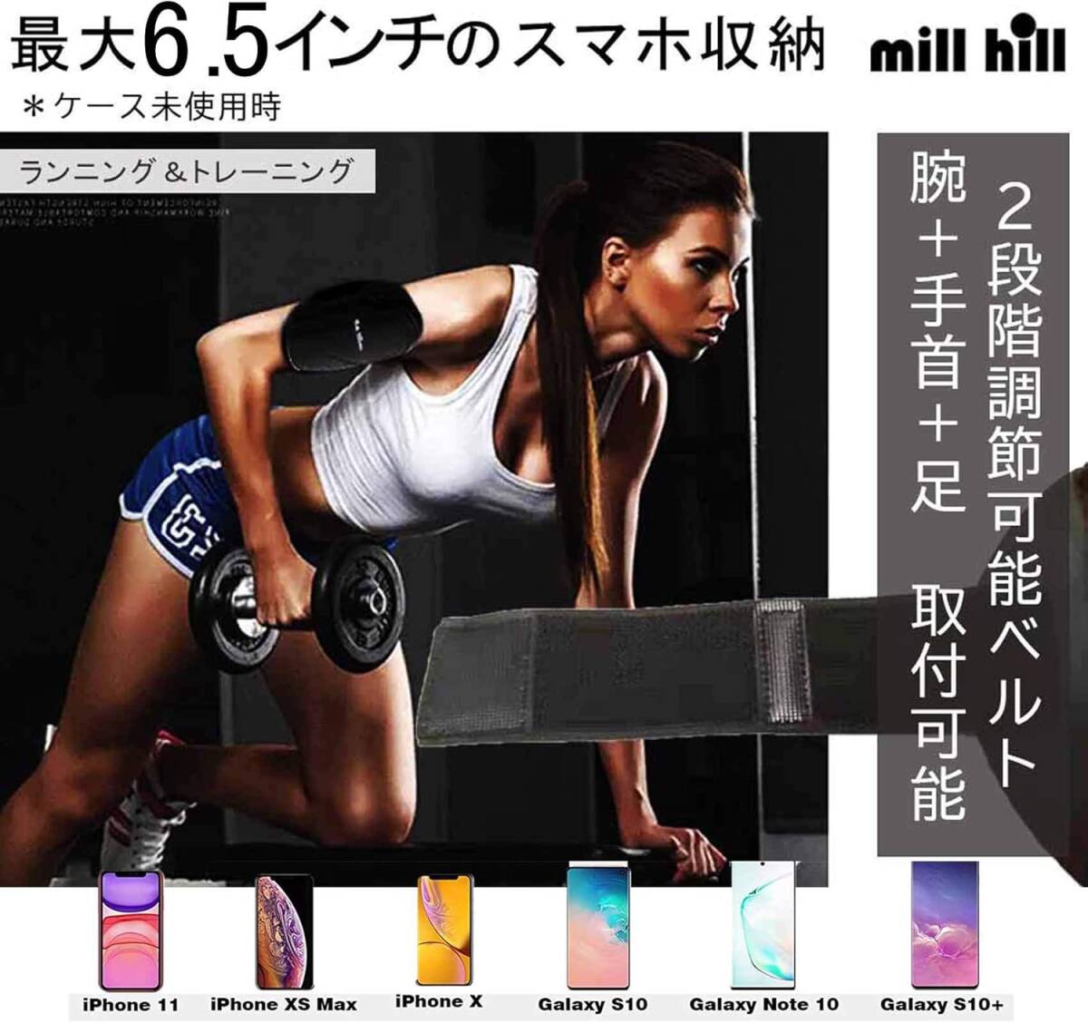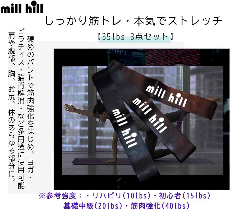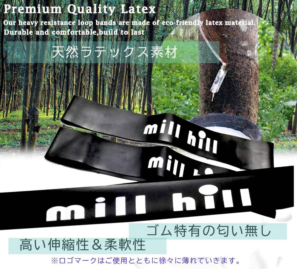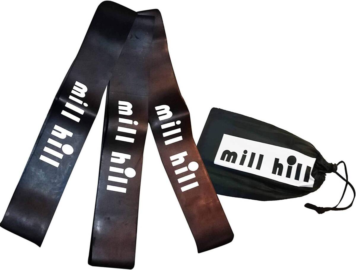 millhill (ミルヒル) エクササイズバンド ヨガバンド 35lbs 中強度 ブラック 収納袋付き