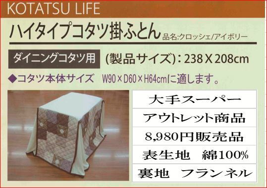 サイズ 60×90cmのコタツで高さ65-70cmのダイニングコタツにあいます。