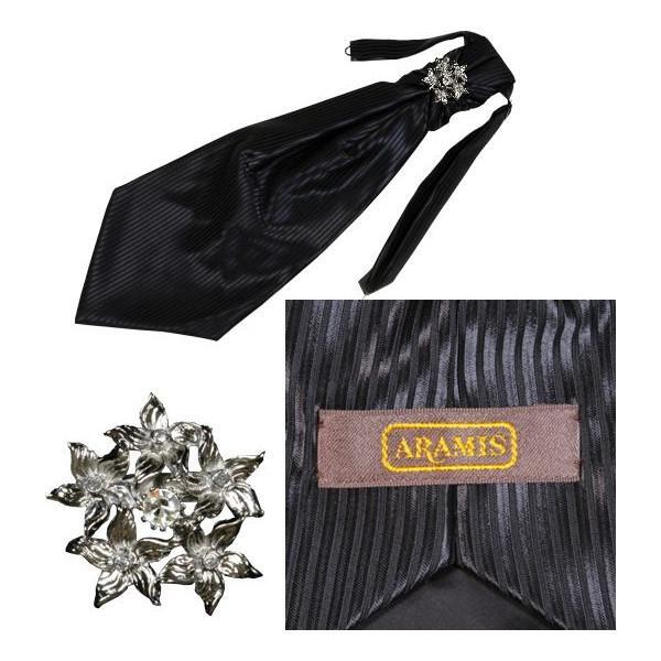 アラミスARAMIS ブラック ストライプ織柄 ブローチ付アスコットタイ