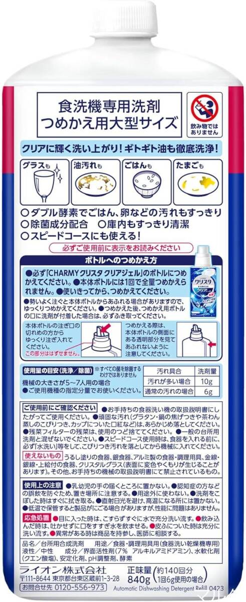 モデル名 【まとめ買い】 チャーミークリスタ クリアジェル 食洗機 洗剤 本体480g+詰め替え840g