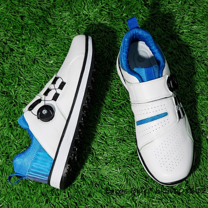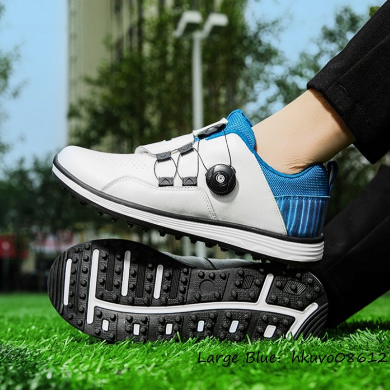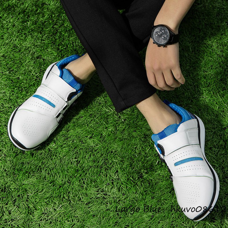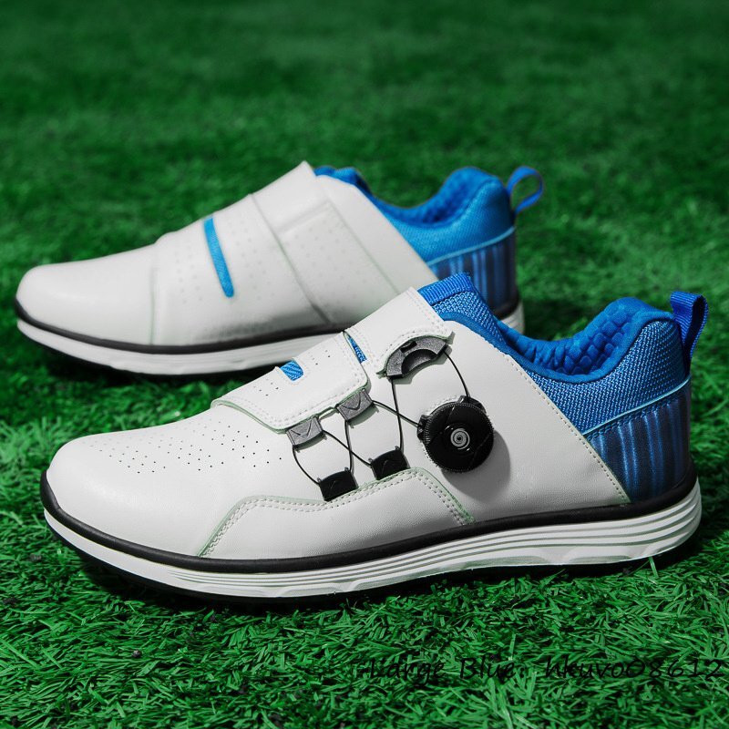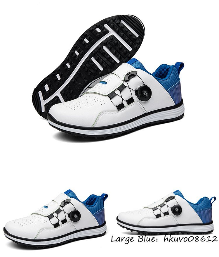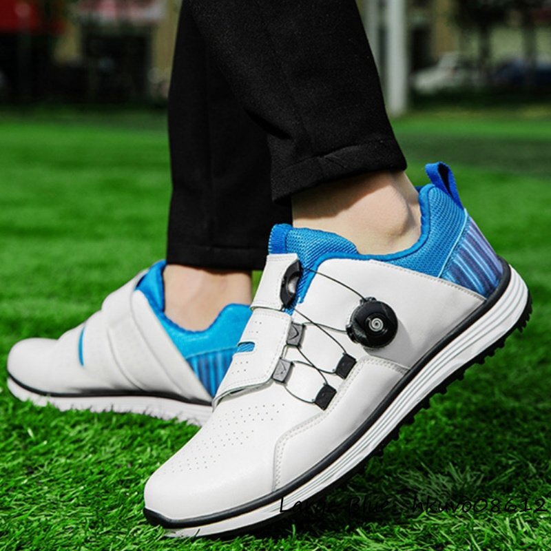 人気新品 スポーツシューズ メンズ ゴルフシューズ ダイヤル式 軽量 運動靴 4E 幅広い フィット感 防水 防滑 耐磨 弾力性 白/青 27.5cm