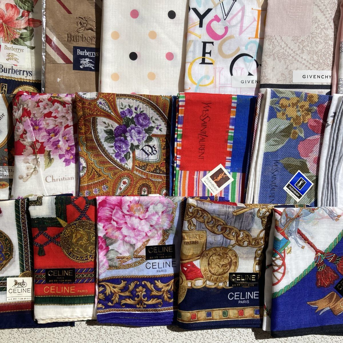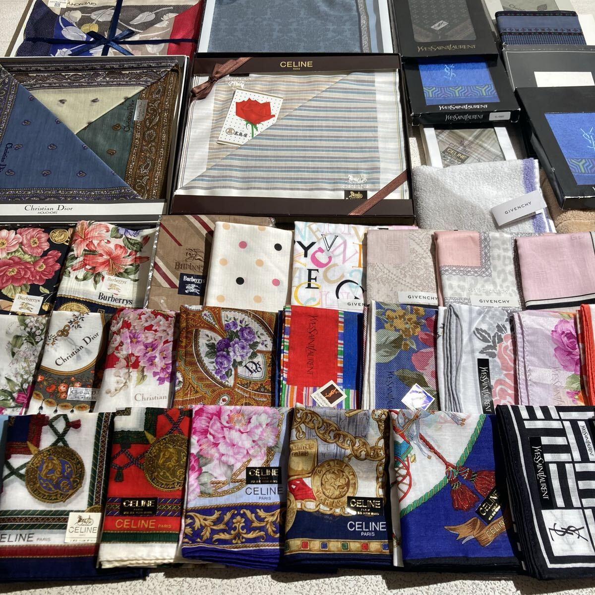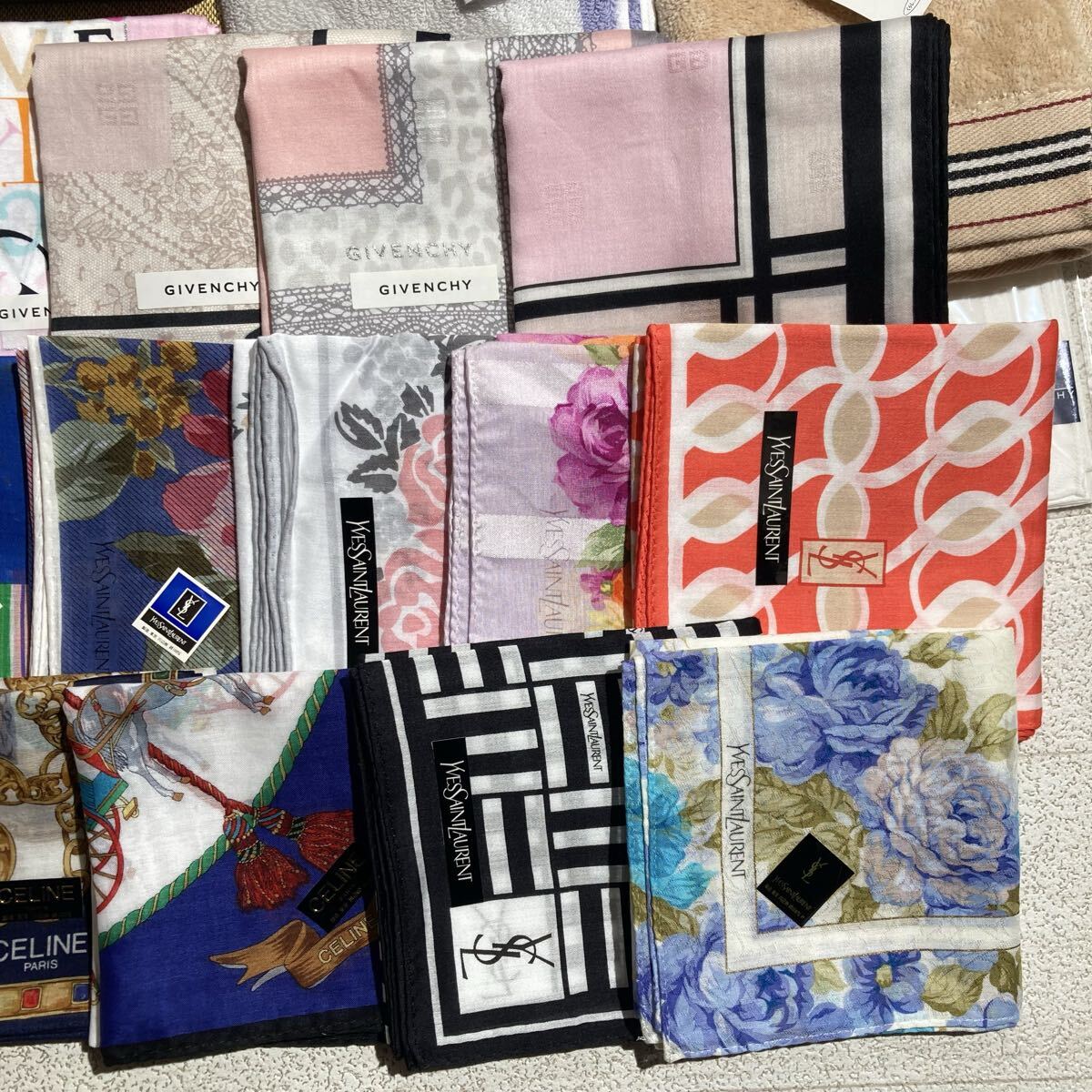 未使用 ハンカチ 大量 まとめ バーバリー セリーヌ ディオール イヴサンローラン等 1128-01