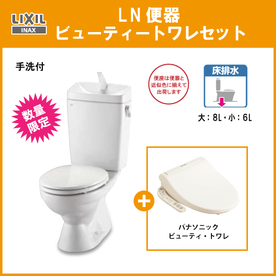 LIXIL INAX LN便器(手洗付) ビューティートワレ(パナソニック製)セット