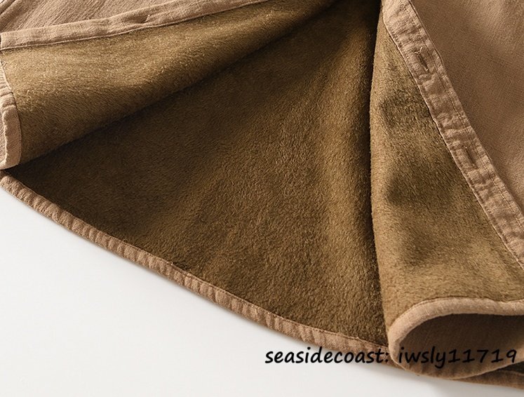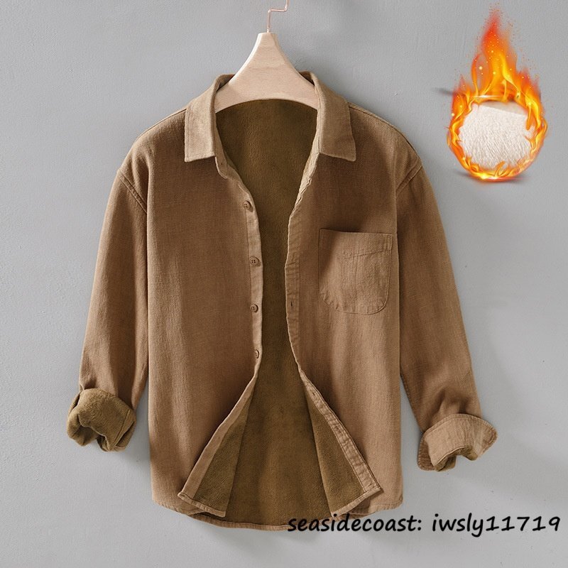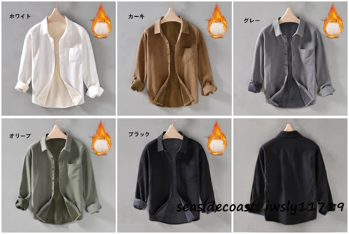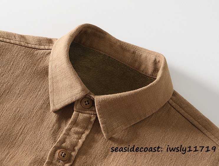 新品◆裏起毛 長袖シャツ メンズ 秋冬 防寒防風 保温 ボアライニング 厚手 フリースジャケット ブルゾン ボアシャツ アウター カーキ XL