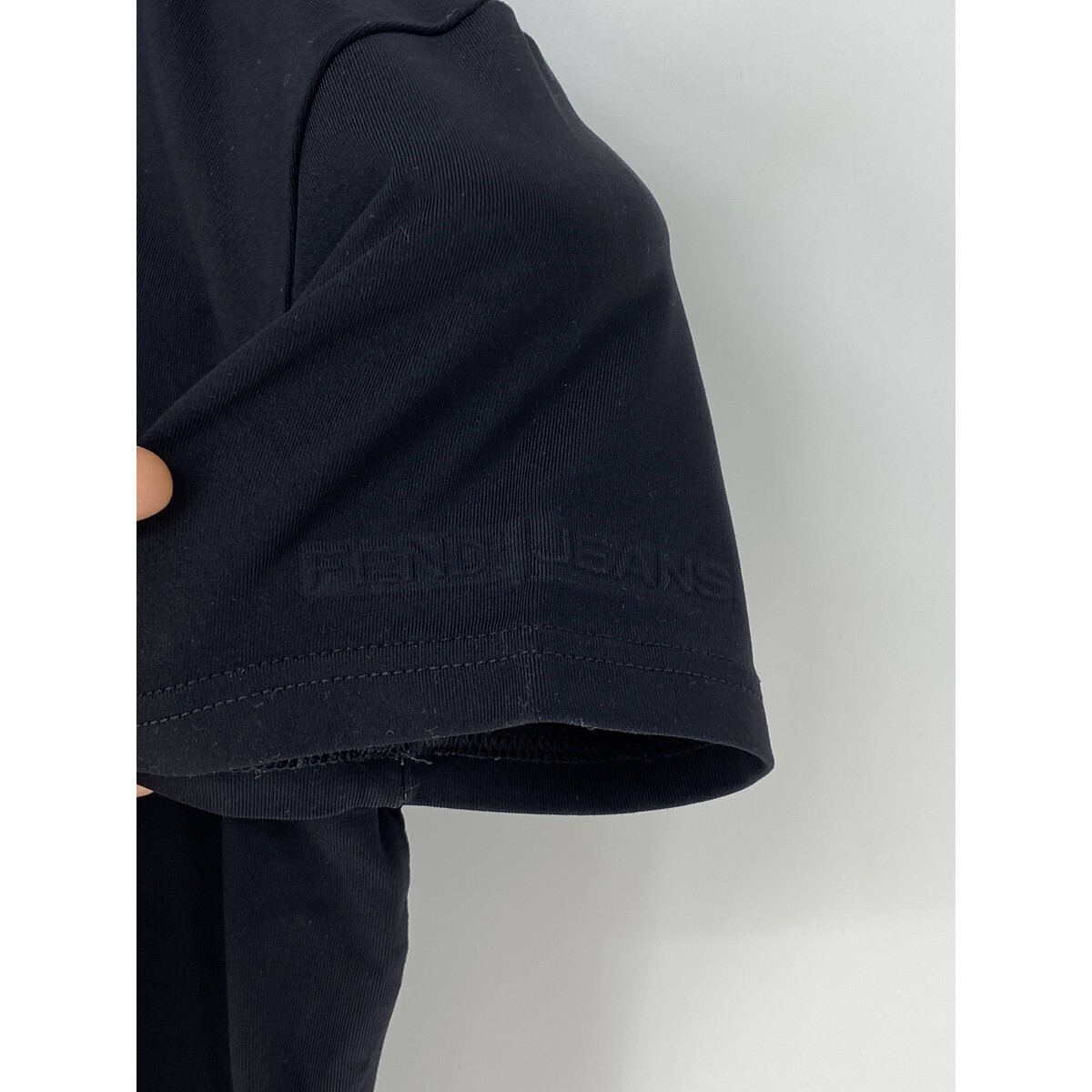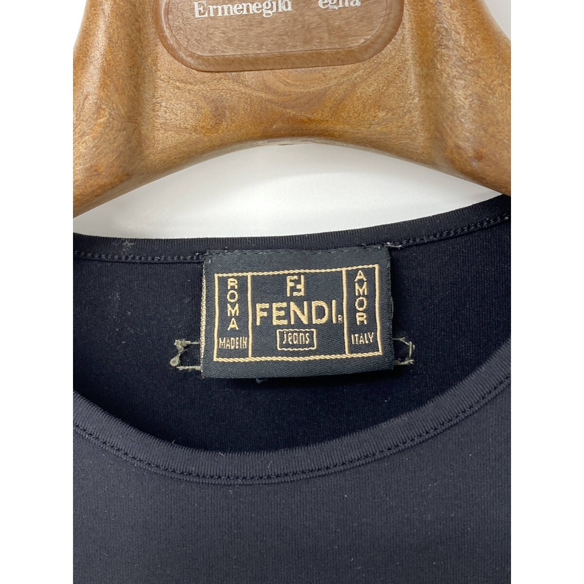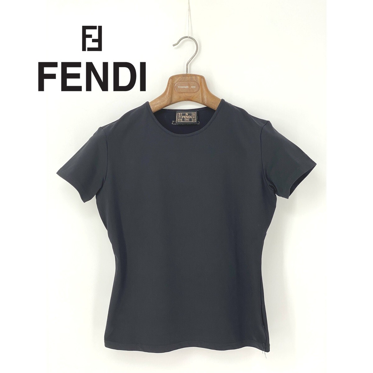 A9219/ビンテージ 80s 90s 極美品 春夏 FENDI フェンディ ナイロン 半袖 袖ロゴ クルーネック Tシャツ カットソー I42 M程 黒 レディース