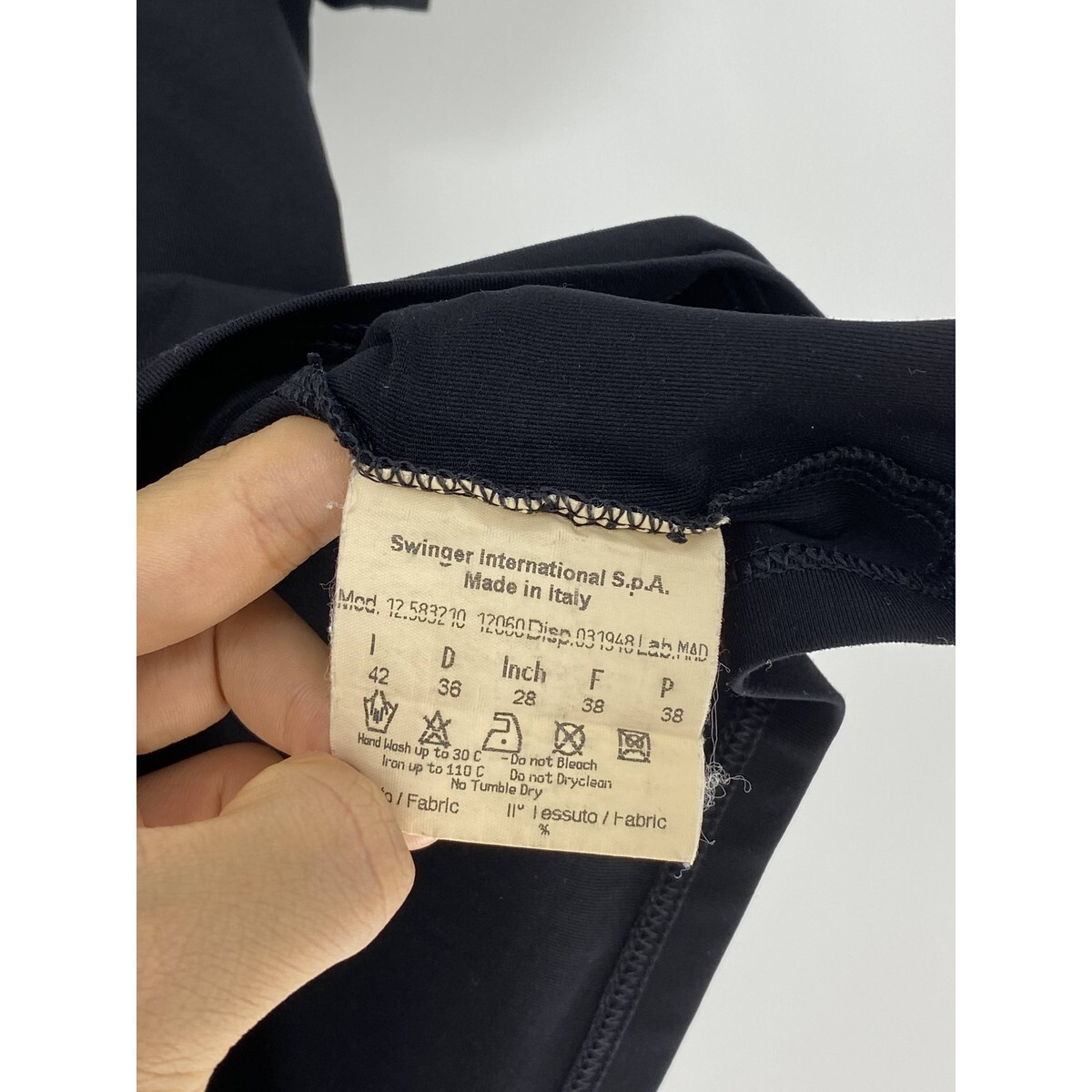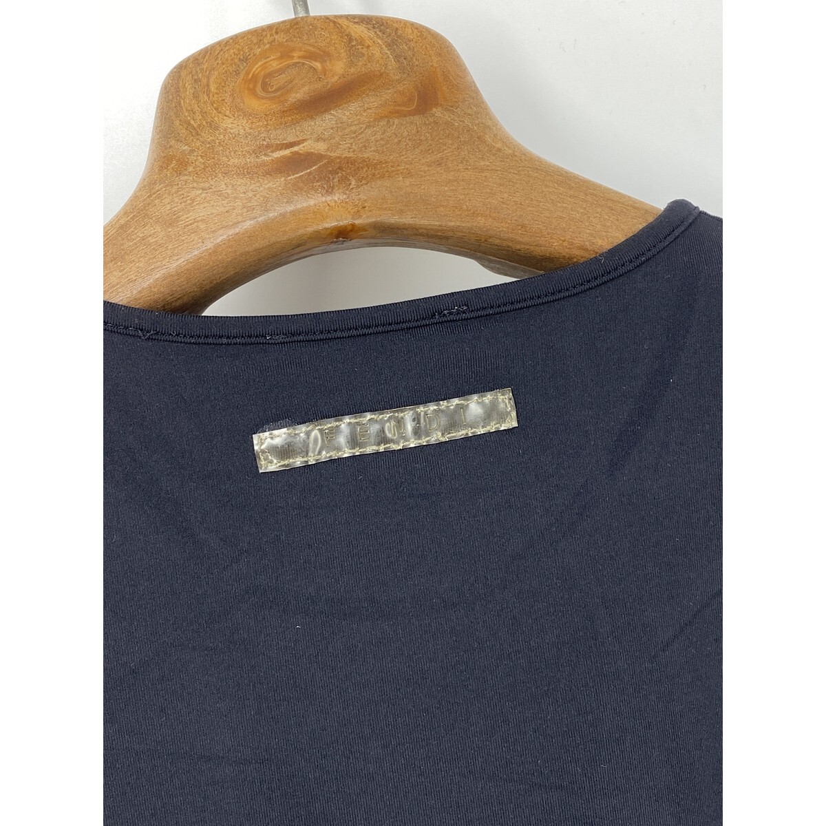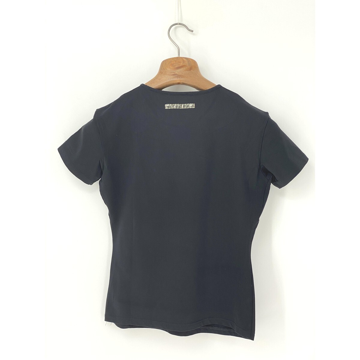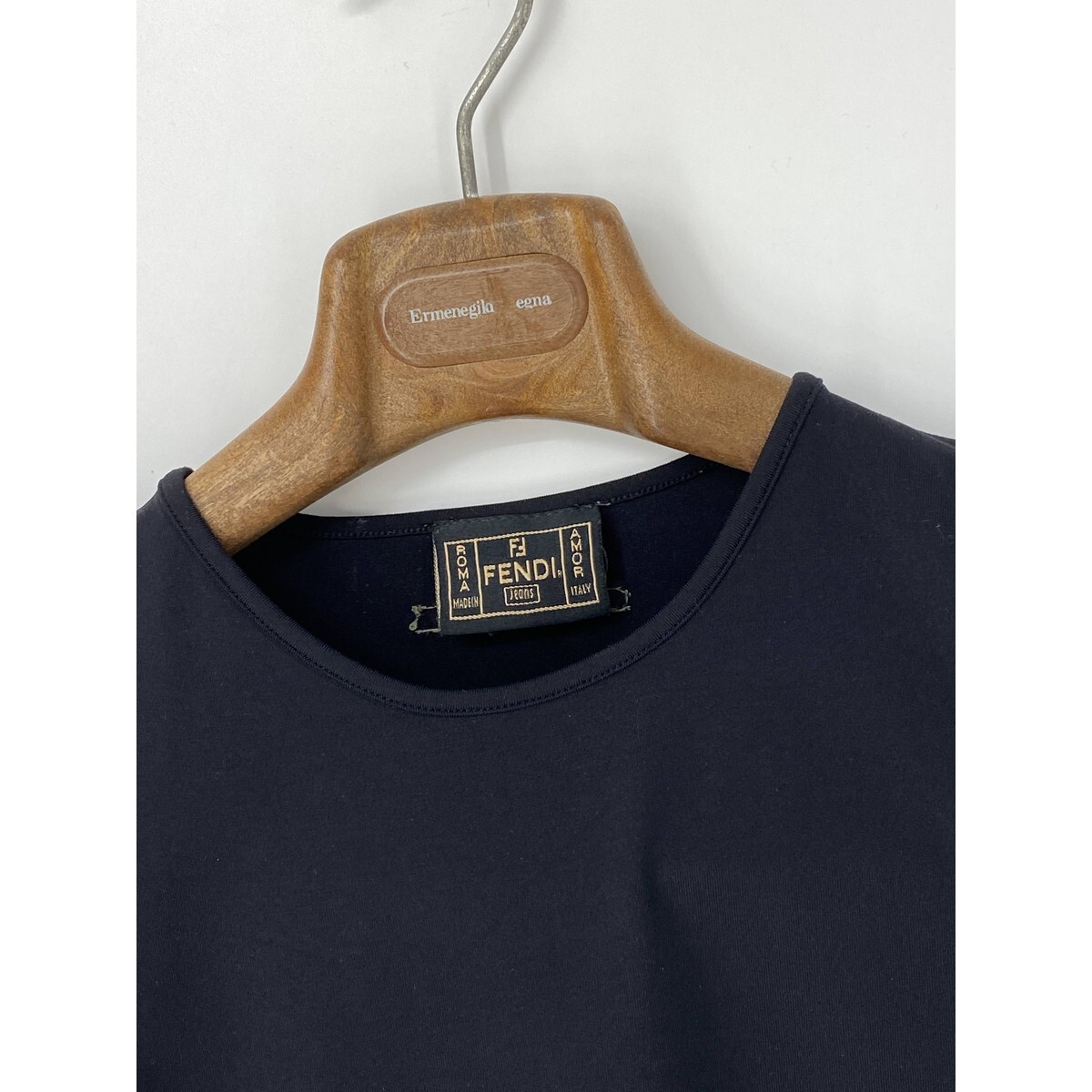A9219/ビンテージ 80s 90s 極美品 春夏 FENDI フェンディ ナイロン 半袖 袖ロゴ クルーネック Tシャツ カットソー I42 M程 黒 レディース