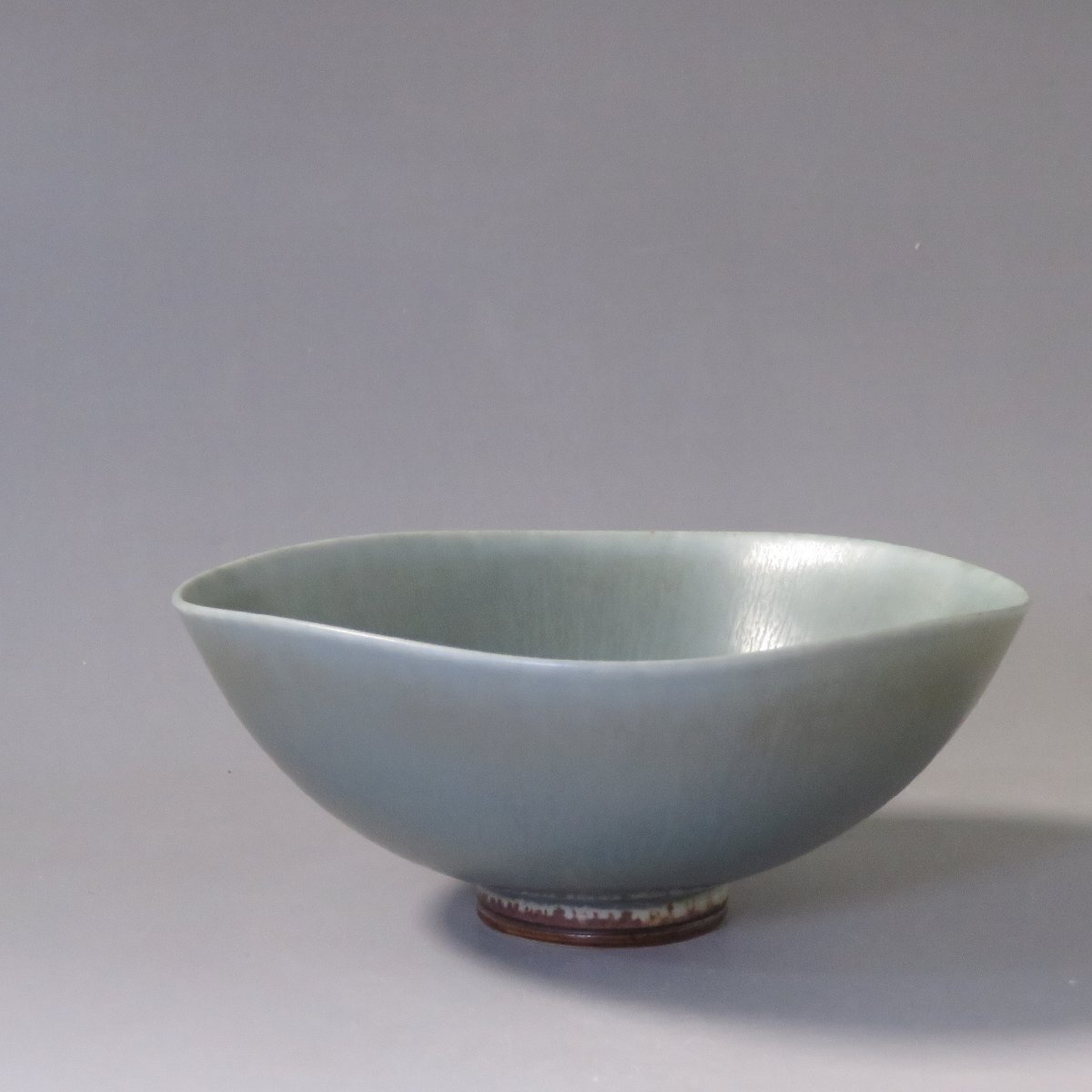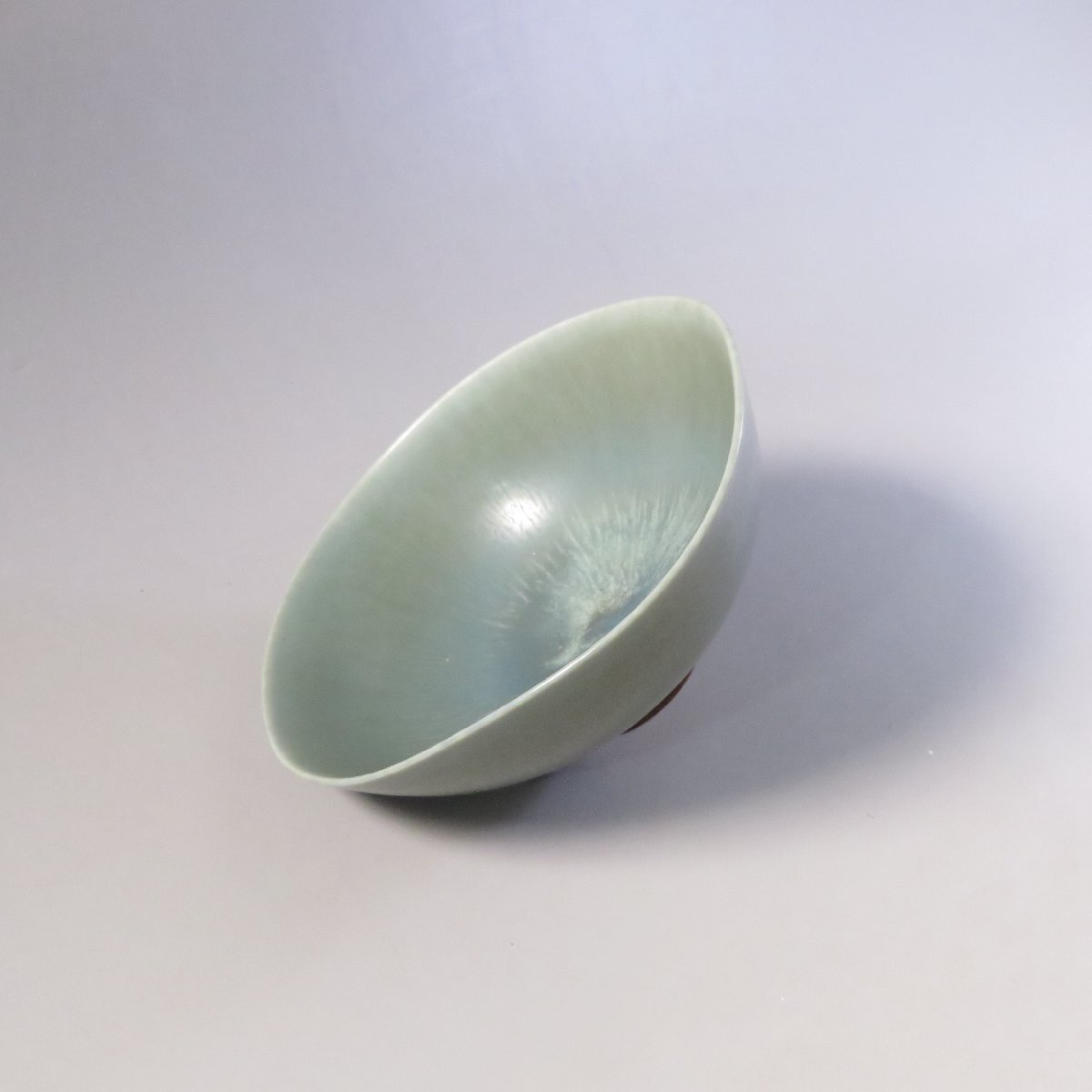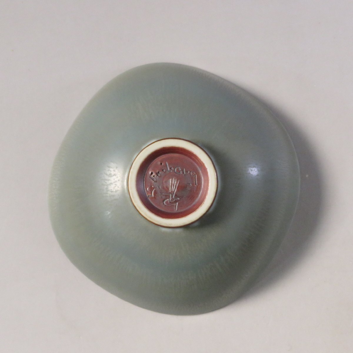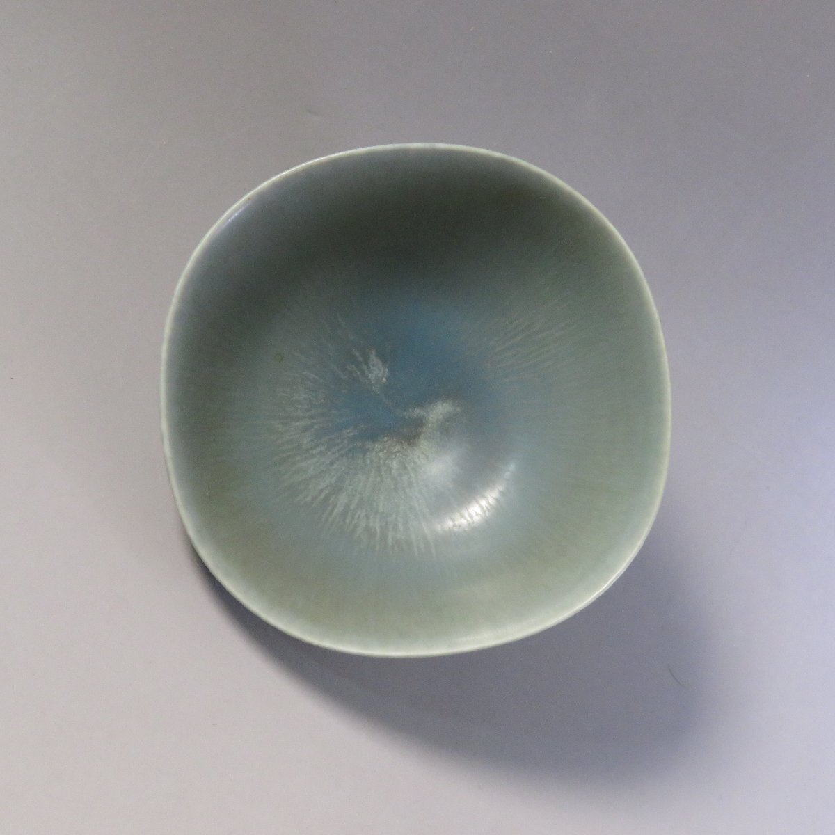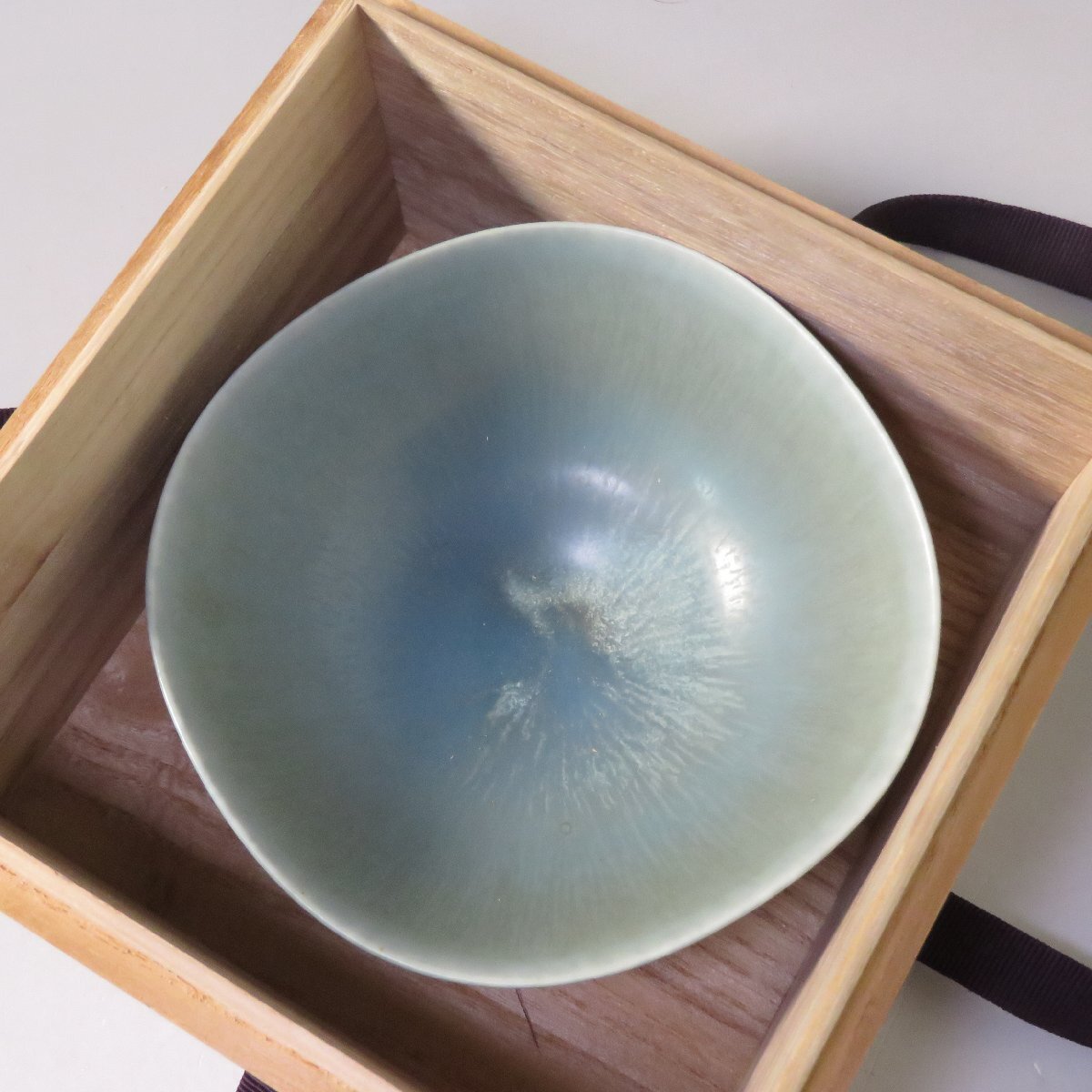 | 商品説明 | ◆◇ベルント・フリーベリ(Berndt Friberg,1899-1981/SWEDEN) グスタフスベリ 兎の毛皮釉 鉢/ボウル/bowl/ 彫銘【G】1965年作 正絹御物袋・隅柱添え 見立てで小服の抹茶碗にも◇◆北欧デザイン 洋食器 ミッドセンチュリー 陶芸 陶磁器 モダン茶道具 懐石 洋食器 おしゃれなうつわ 抹茶 chado ware, vintage porcelain/ fabric art, 茶篭 近代作家 民藝 超絶技巧 art piece dfsy11143-w ≪ サイズ ≫(若干の誤差はご了承ください) 直径 11.6 × 高さ 4.8 cm ≪ 状態 ≫ 極美品です ≪ 説明 ≫ ベルント・フリーベリはヴィルヘルム・コーゲのもとでグスタフスベリ工房でのキャリアを積みはじめ、生涯多くの作品を自ら轆轤で手掛けて『神の手』の異名を得ました。リサラーソン、リンドベリと並んでグスタフスベリ製陶所が輩出した北欧を代表する名工の1人です。 この作品は、伝統的な兎毫盞の釉薬を思わせながら、北欧らしいモダンな空気を併せ持った神秘的な作品です。 しっかりと茶だまりのある見込みといい、茶箱の仕込み茶碗などにもちょうどいいサイズです。 1965年作と言われる『G』の刻印が入り、最も脂の乗った時期の作品であることがわかる、アートピースとしての価値も高い作品です。 箱は桐の合わせ箱。御物袋は紐も裂も全て絹製です。 ≪ 箱行・鑑定・付属品 ≫ 木箱 |