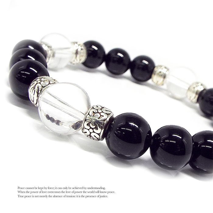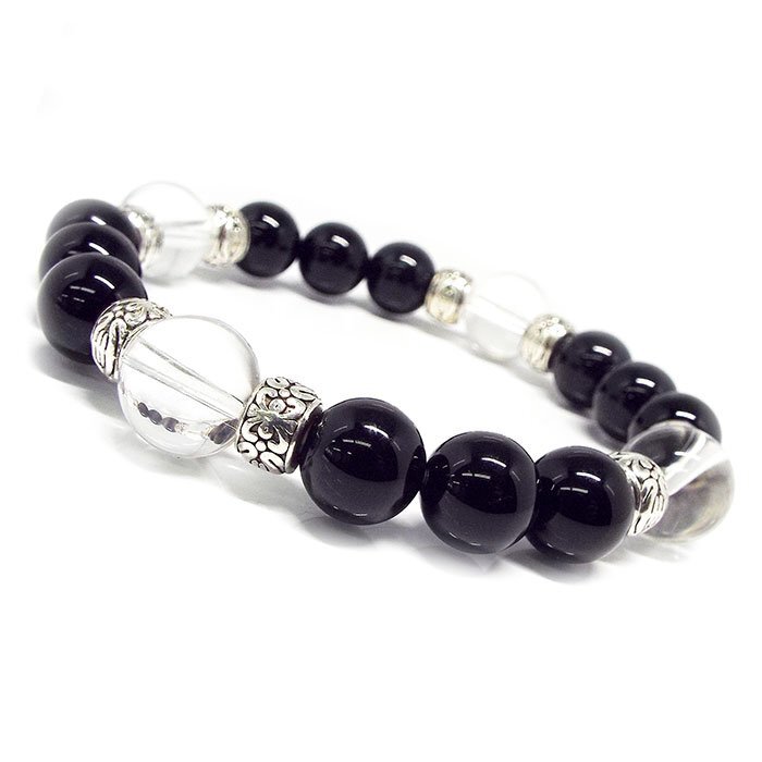 | 【STONE KITCHEN 天然石 パワーストーン】 どんなコーデにもさり気ない”上品さ”をくれる!!! 仕事やプライベート時など、使うシーンを選ばないシックで スタイリッシュなブレスレットに仕上がりました☆ 水晶とオニキスの組み合わせは忍耐力や意志の強さを与え、成功の象徴とし 挑戦、勝負を成功へとサポートしてくれると言われています。 内周:約18cm サイズ:水晶 12mm オニキス 10mm 1点 注意事項 ※金属部分は汗や汚れ等で変色する場合がございます。気になる場合は 金属磨きや布等で軽くふき取る事をおすすめします。 ※石の種類によっては、艶を引き出すことを目的として、ワックスや着色加工がされているものもあります。 ※表示のサイズは必ずしも最大値・最小値のサイズのものが入っているわけではございません。 ※天然石のため同じものでも色味・模様などが異なります。 ※照明の具合で実際とは色合いが異なる場合がございます。 また、天然素材特有のクラック・内包物を有する場合がございます。予めご了承下さい。 | |||