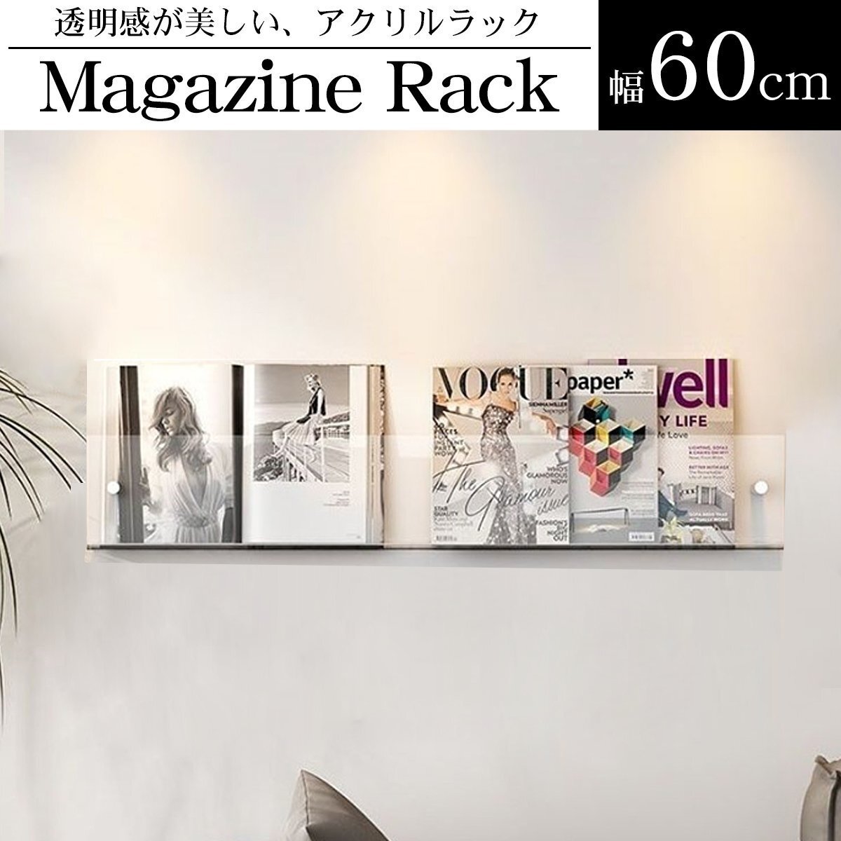 ウォールラック 壁 マガジンラック 単品 幅60cm アクリル レコード 収納 ディスプレイラック 収納ラック 雑誌 薄型 ins風 透明 WP-66CL