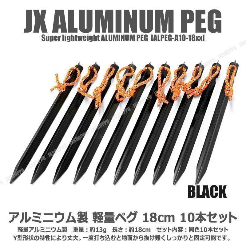 送料無料! Y型 テント ペグ 18cm [ブラック] 10本セット 軽量 ジュラルミン製 アルミニウム アルマイト 紐付属 アウトドア キャンプ用品