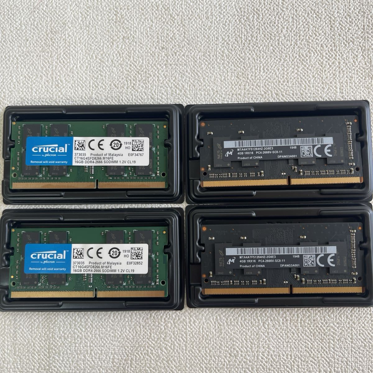 ☆【ジャンク】 crucial CT16G4SFD8266.M16FE/Micron MTA4ATF5126HZ-2G6E3 4点まとめて ノートPC用メモリ 保管品