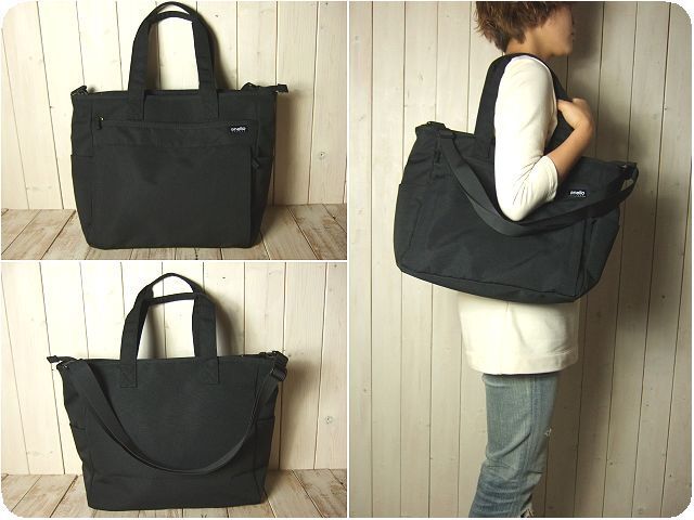 アネロ anello 軽量撥水杢調ポリエステルの10ポケット2WAYトートバッグ BK