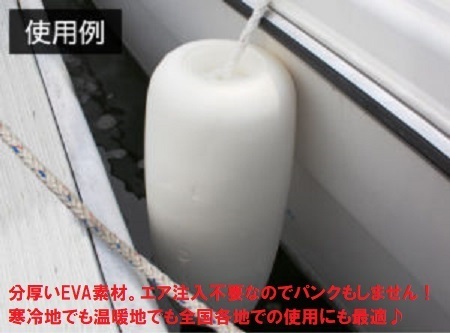 商品詳細はこちら ◇◆商品詳細◆◇ ■品番:30D0002 BL-302 ■適合ボートサイズ:27ftまで ■サイズ:480×210mm ■センター穴:Φ25mm ■材質:EVA/樹脂 ◇◆特徴◆◇ 衝撃強く潰れないから 究極のノーパンクフェンダー 膨らます必要なしで大型艇・業務艇などに最適 EVA(エチレン酢酸ビニール重合体)とは、完全に独立した無数の気泡でできた発泡体 そのため柔軟性に富み、水を寄せ付けず湿気の進入を防ぐため、寒冷地でも硬化せず弾性を発揮 半永久的に使えるフェンダーの決定版! | ||||