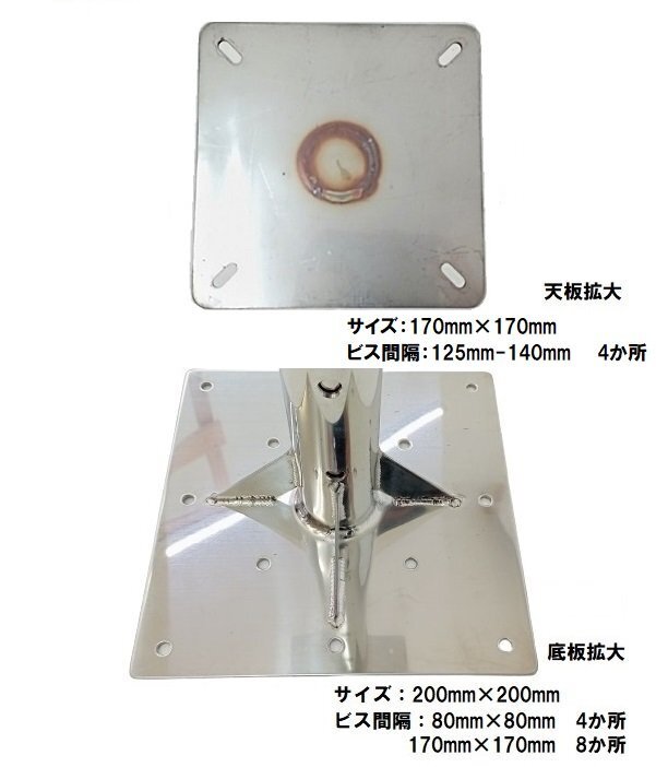 <シート> ■商品コード:30C0031 フルセット・グレー/ホワイト ■タッピングビス4本付属 ■ネジ穴:Φ約3.8mm <シートベース> 材質:SUS304ステンレス マリングレード鏡面仕上げ 座面サイズ:170mm×170mm 底面サイズ:200mm×200mm 高さ:450mm~750mm(スイベル上面まで)6段回調整 支柱サイズ:Φ上部支柱39mm、下部支柱43mm、支柱厚3mm、上部座面、下部底面厚3.5mm シート取り付けネジ間隔:125mm-140mm 付属品:ストッパーピン ★コメント <シート> スモールボートに最適な軽量・コンパクトタイプ 背面・座面ともに小さめに設計されていますが横幅を広くすることでゆったりと座れます コンパクトながら快適な座り心地を実現し、インフレータブルボートや2馬力ボートなどに最適 コンパクトで軽量かつ、折り畳むことができます また、折り畳んだシートが開かないようにスナップが付いているので持ち運びやすく、車載時にも便利 <シートベース> シートベース:ハイポジションシートベースの上部は回転式です。別で回転スイベルを購入する必要はありません (ストッパーピンで上下の部材を固定すると固定、ストッパーピンを下の部材に差し、そこへ上の部材を載せると上下の部材に固定がなく、上の部材がフリーになり回転します) シンプル・イズザ・ベストのデザイン 最近のボートに最適なハイポジション対応のシートベースで、最大750mmまでの高さが出せます 最小では450mmになりますので、センターコンソール艇や、ファミリークルーザでも使用できます | ||||