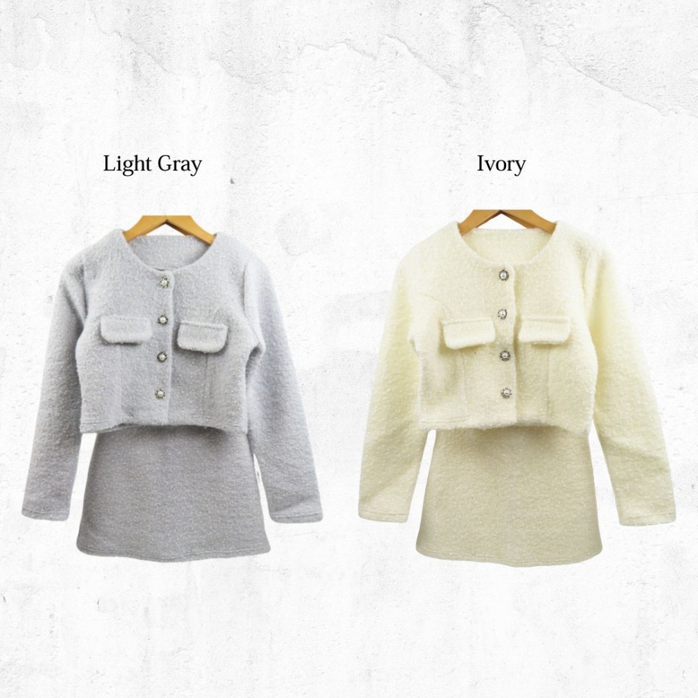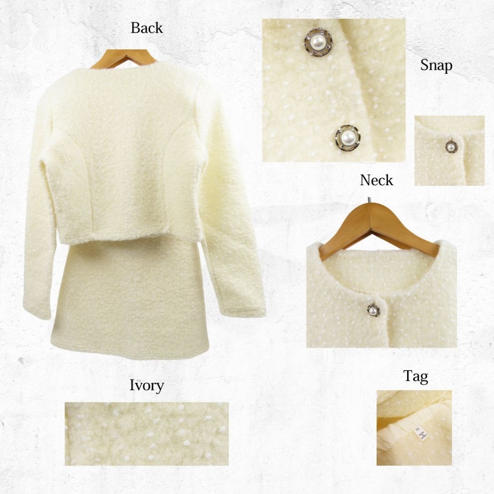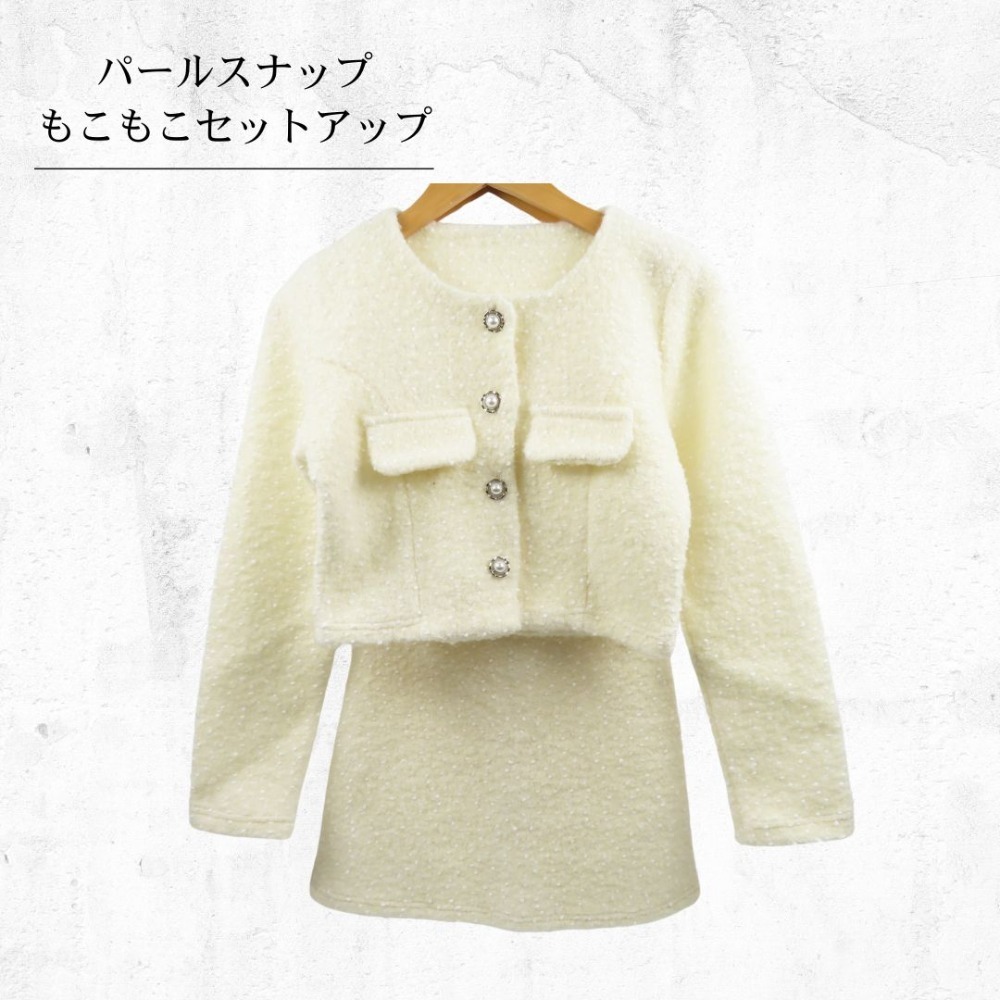 モデル韓国アパレル ファッション インポート 20代 30代 秋 冬 トレンド おしゃれ 可愛い サイズフリー パール調 ジャケット スカート もこもこ S