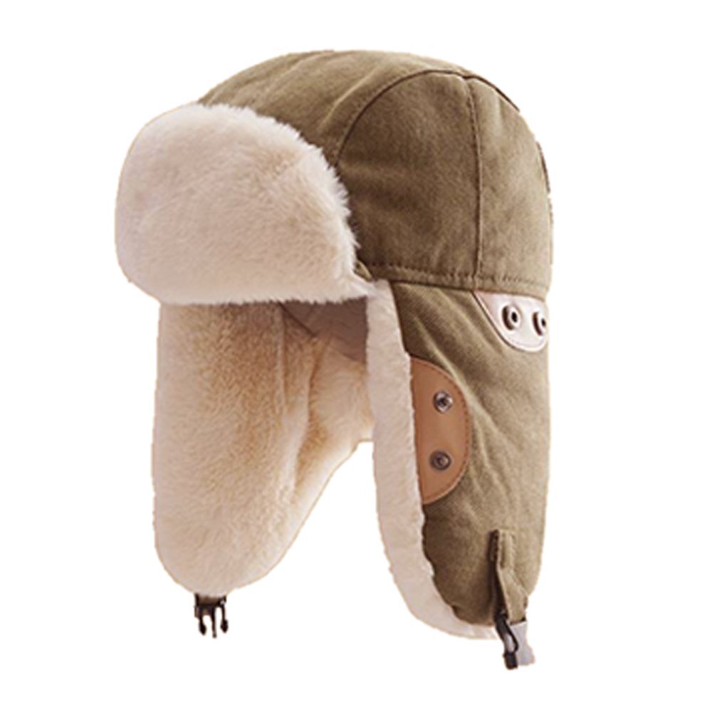 ◆フライトキャップ パイロットキャップ 2WAY 耳あて イヤーマフラー ファー帽子 飛行帽 ロシア帽 ボアキャップ 防寒 防風 男女兼用 スキー スノーボード アウトドア【カーキ】LFM556