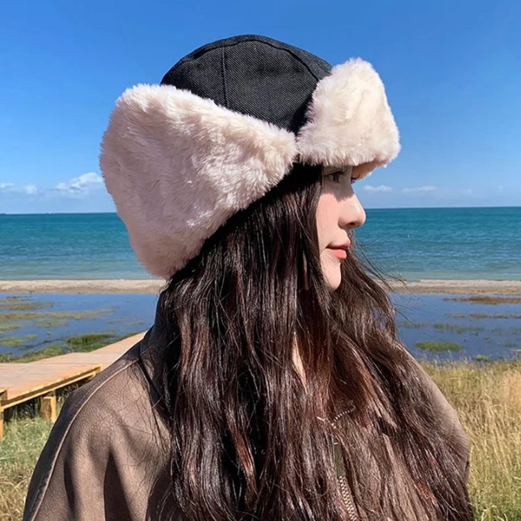 耳あて部分は折り返してボタンで留めることができるので、気分に合わせて2通りのデザインで着用できます。