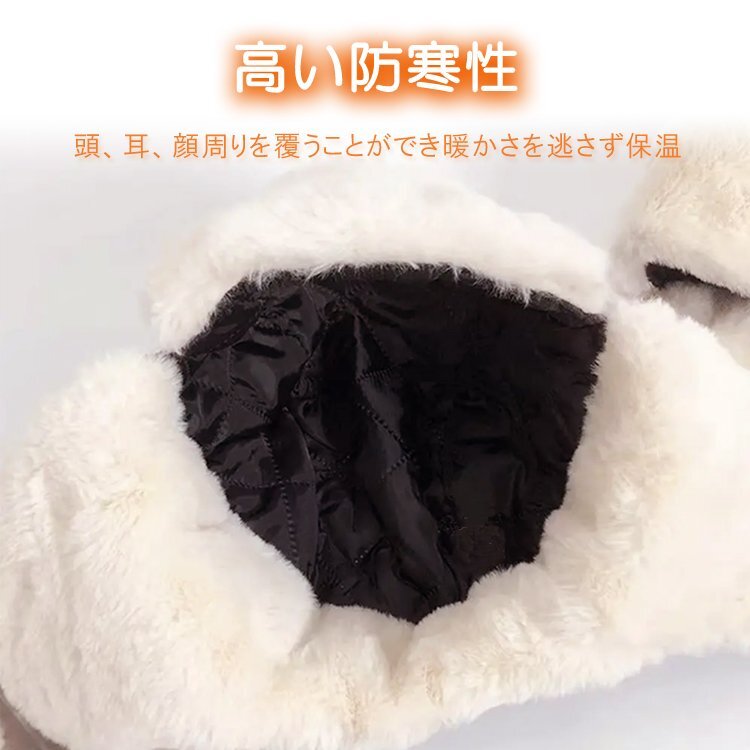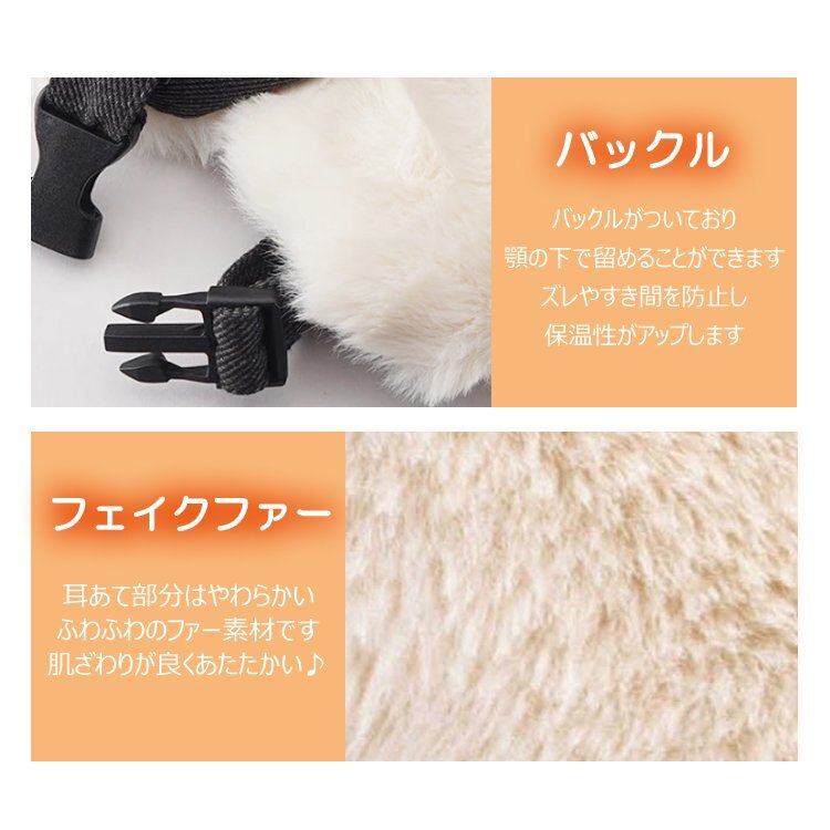 顎部分にはバックルが付いており、ベルトで固定することができ、ズレやすき間を防止し、寒さをしっかりガードします。