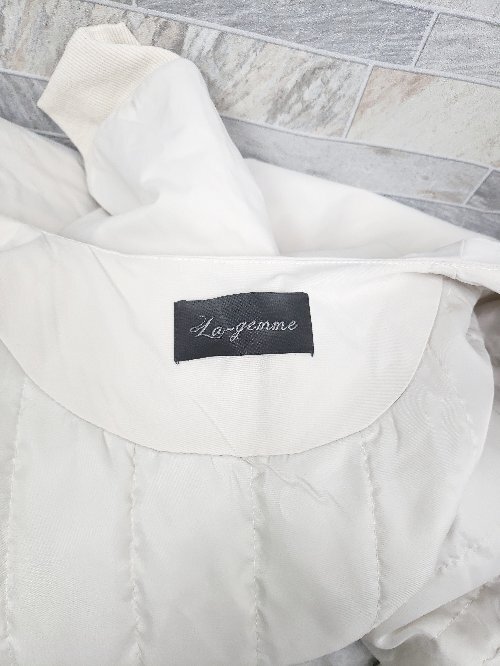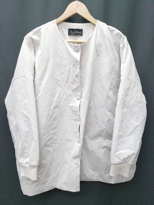◇ La-gemme ラジェム ノーカラー 中綿 長袖 ブルゾン ジャンパー ライトベージュ レディース P