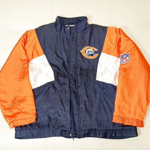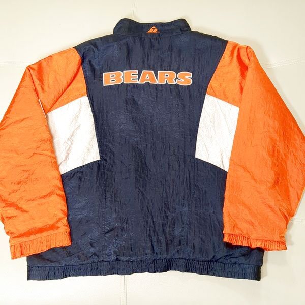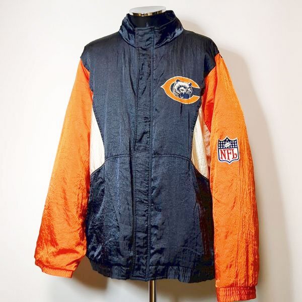 【シカゴベアーズ 中綿ジャケット キルティング L ヴィンテージ 90s ナイロンジャケット 刺繍 ワッペン APEX ONE NFL アメフト Chicago Bears マルチカラー】