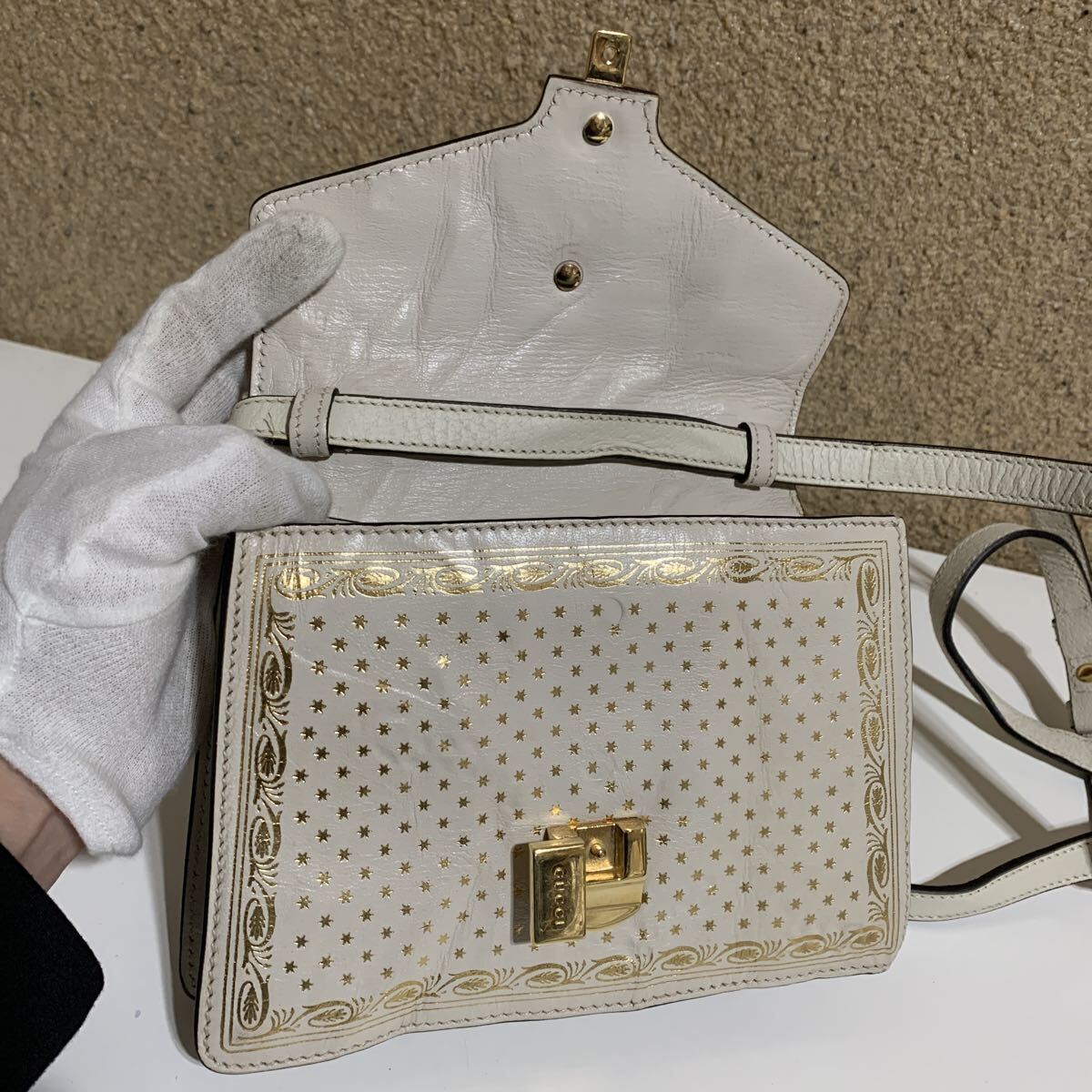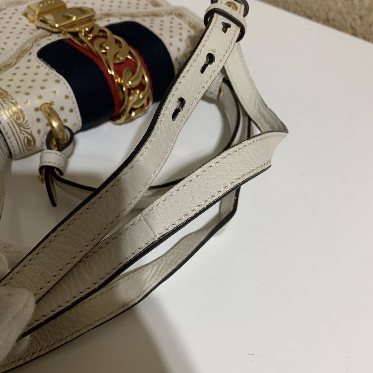画像の通り、本体、レザー、金具に擦れや汚れ形崩れ、内側に破れなど使用感は感じられますので、ご理解お願い致します。