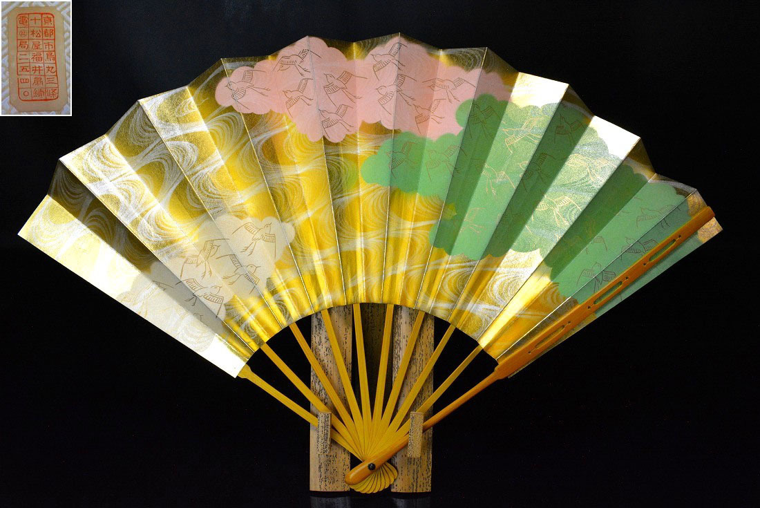 京都 十松屋福井扇舗 舞扇 飾扇 扇子 金地 千鳥 能扇 能楽 仕舞 箱付 D919-19 |