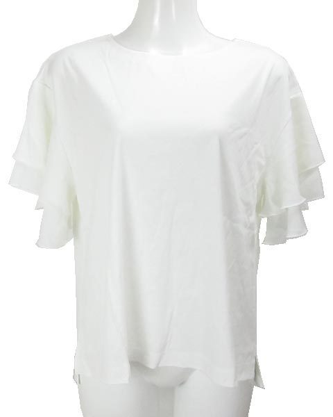 | コメント | シフォン二段フリル袖がポイント☆ 肌触りも良く、伸縮性もあって◎です。 左下部にエンブレム、両サイドにスリットがあります。 |