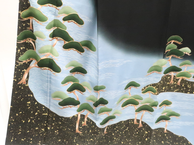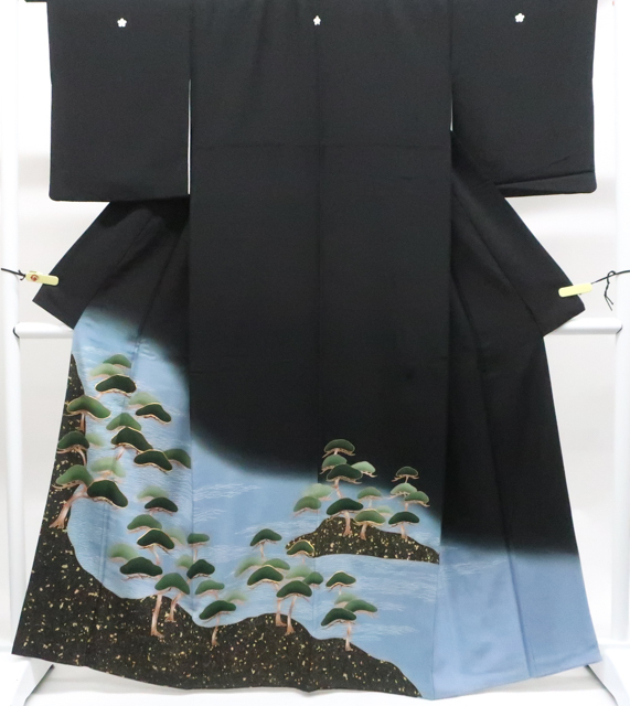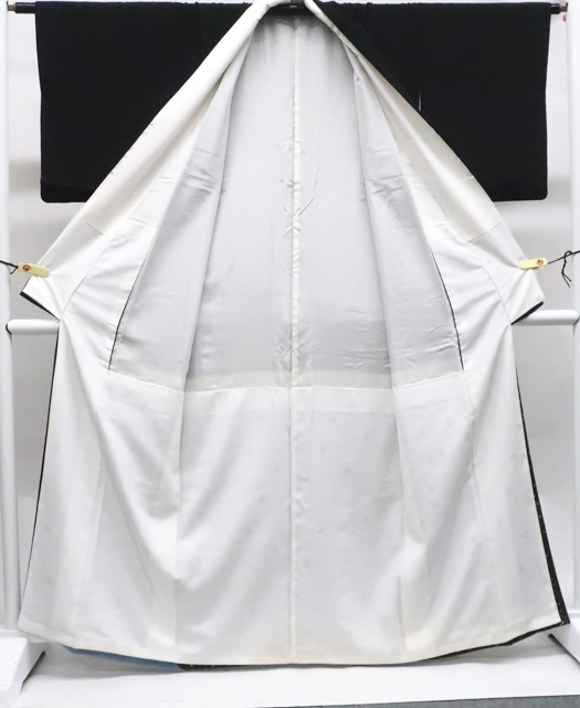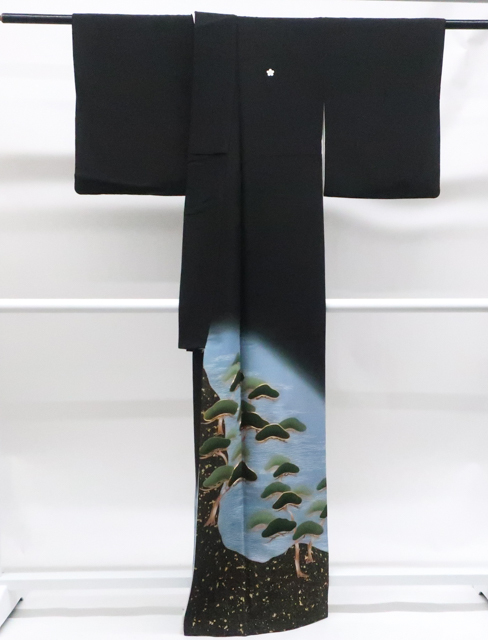 リサイクル商品のため、下前にと比翼裾にしみがございます。 衿薄汚れがございますが着用可能なお品です。 地色は黒です。 1枚目の画像が近いお色かと思われます。 素材は正絹です。 |