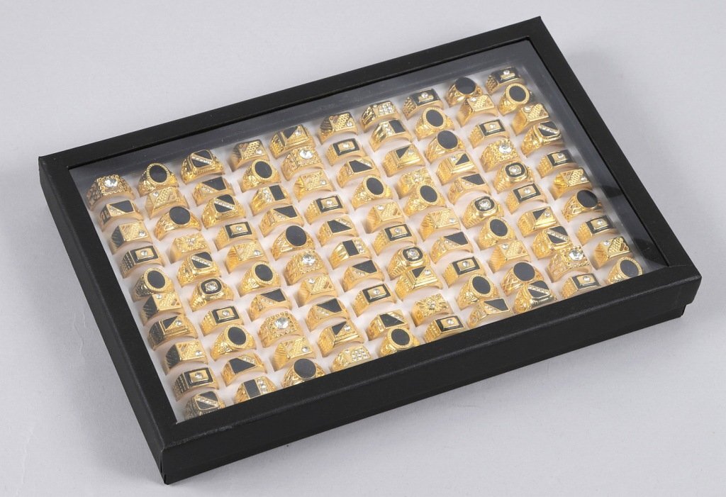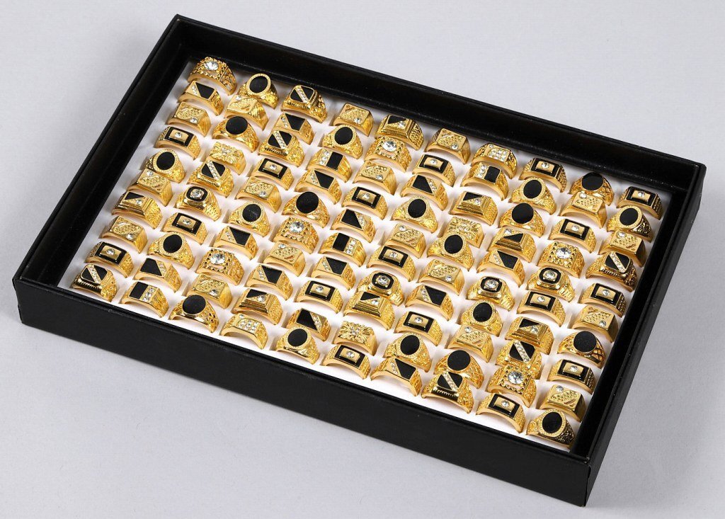 新品 ゴールド 指輪 豪華100点セット 金色のファッションリング 豪華 100点セットです。 指輪のデザインは写真を参考にしてください。 個数:100点 サイズ:約16-20mm 材質:金色メッキ (金によるメッキではありません。) 商品は写真の指輪をランダムに100点選んで発送いたします。 (サイズもランダムに選んで発送いたします。) 選ぶ際はなるべく写真と同じような比率になるように選ぶようにいたします。 (極端な偏りがあるような選び方はいたしません。) ※写真のようにケースに指輪100点を収めた状態で発送いたします。 (ケースはロットによってデザインやカラーが違う場合があります。) 個々の指輪用のケースは付属しません。 ※ケースはおまけとして出品しますので、ケースの不具合に関しては対応はできません。 当店の他の出品商品との同梱料は下記のとおり落札1点につき200円です。 |