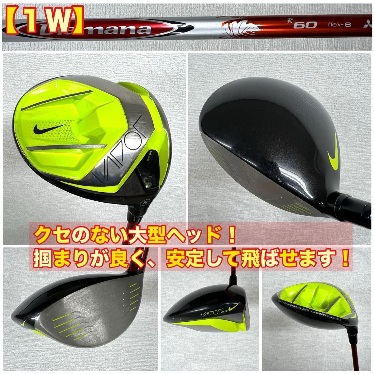 ドライバー、フェアウェイウッド(飛距離を稼ぐ3番)、スコアメイクには欠かせないユーティリティをセッティングしてあります。特にユーティリティをセッティングすることであらゆる場面に対応でき、状況に応じて多彩なショットでコースを攻めれます!アマチュアゴルファーの必需品です(^^)