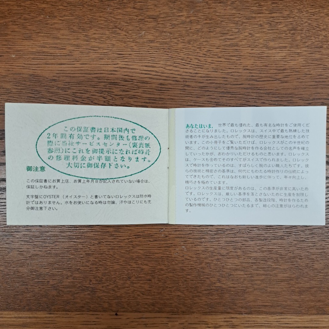 昔の日本ROLEXに使用されていました『ROLEXの歴史、取扱説明 及び 表紙裏面に修理料金が半額と記載ロレックスに関しての』冊子