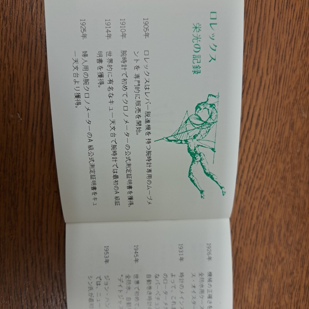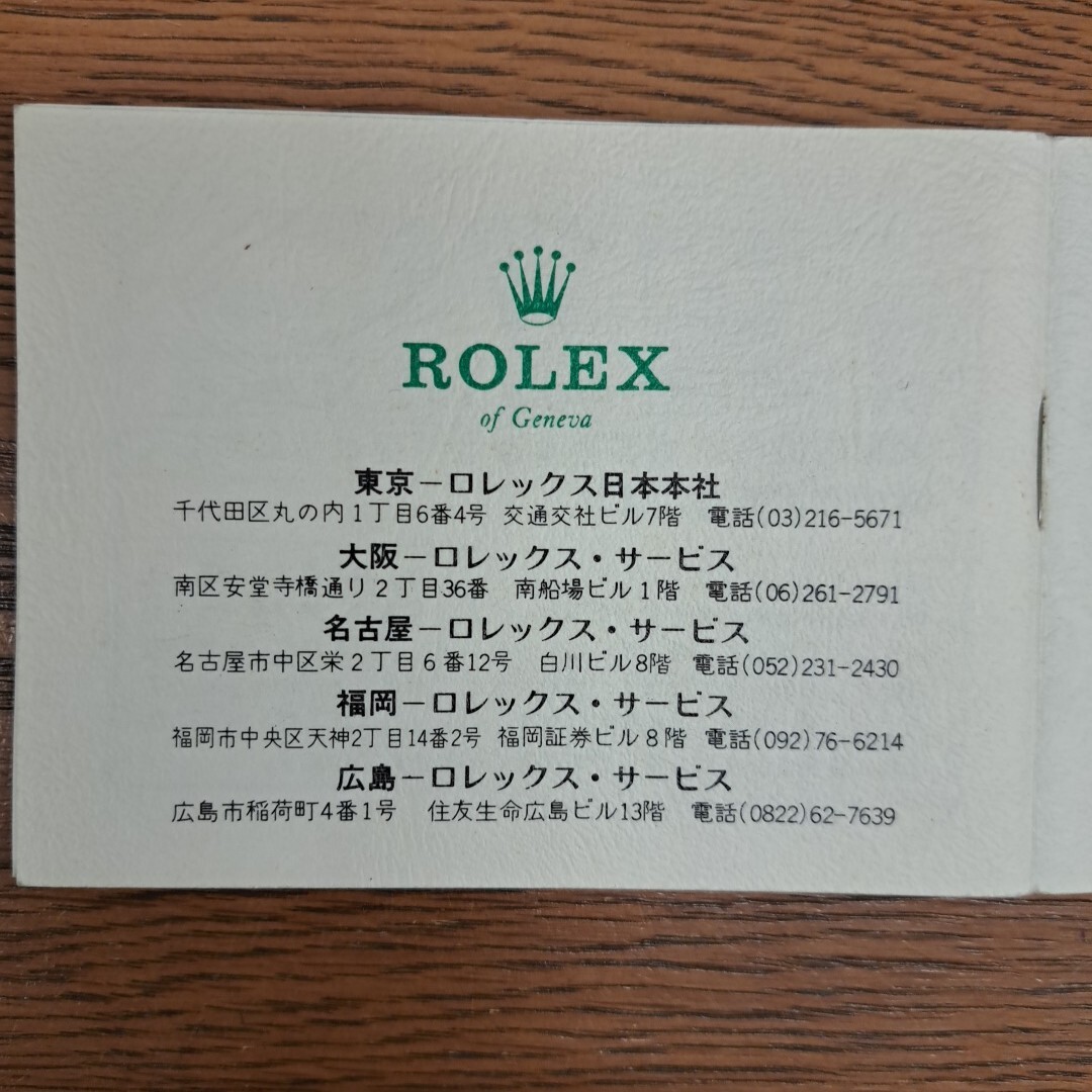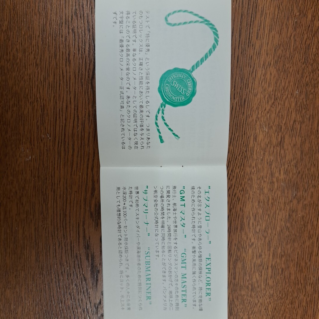 (2)ロレックスに関しての説明、クロノメーターの説明、ロレックスの栄光の記録、取扱説明、時計のサービスレコード などが