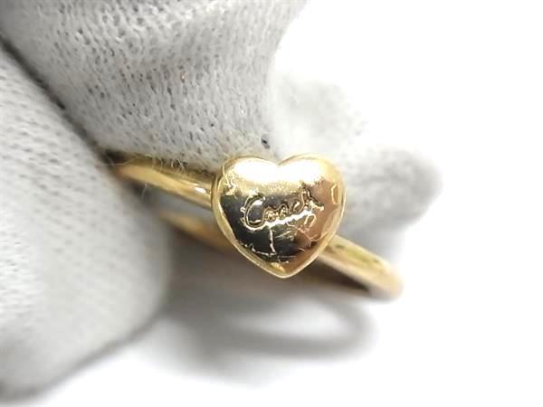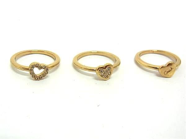 ■美品■ COACH コーチ 3連 ハート リング 指輪 アクセサリー 約9号 レディース ゴールド系 DI9581