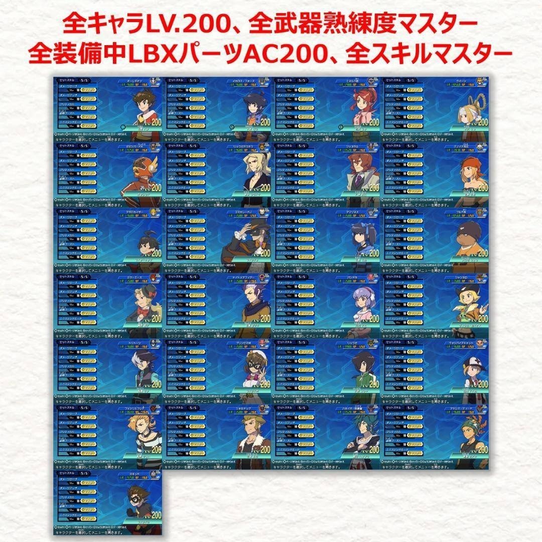 【③】全キャラLV.200、全武器熟練度マスター、全装備中LBXパーツAC200、全スキルマスター
