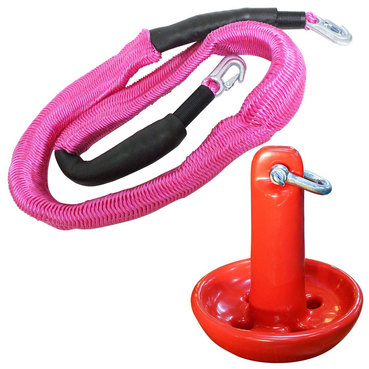【送料無料】『伸縮ロープ/アンカーセット』マッシュルームアンカー 10LBS 4.5kg 赤 レッド 6M フロート のびのび アンカー ロープ ピンク