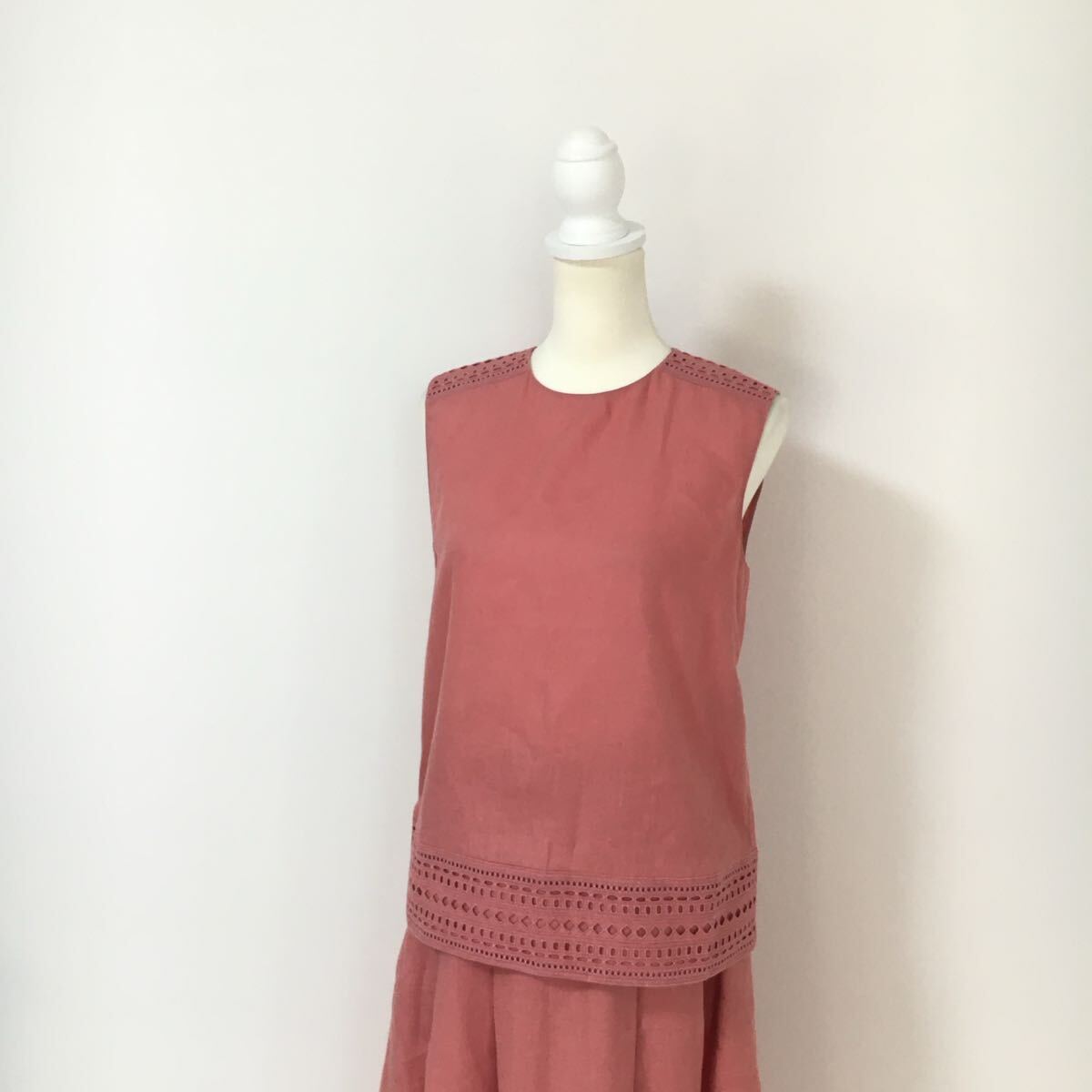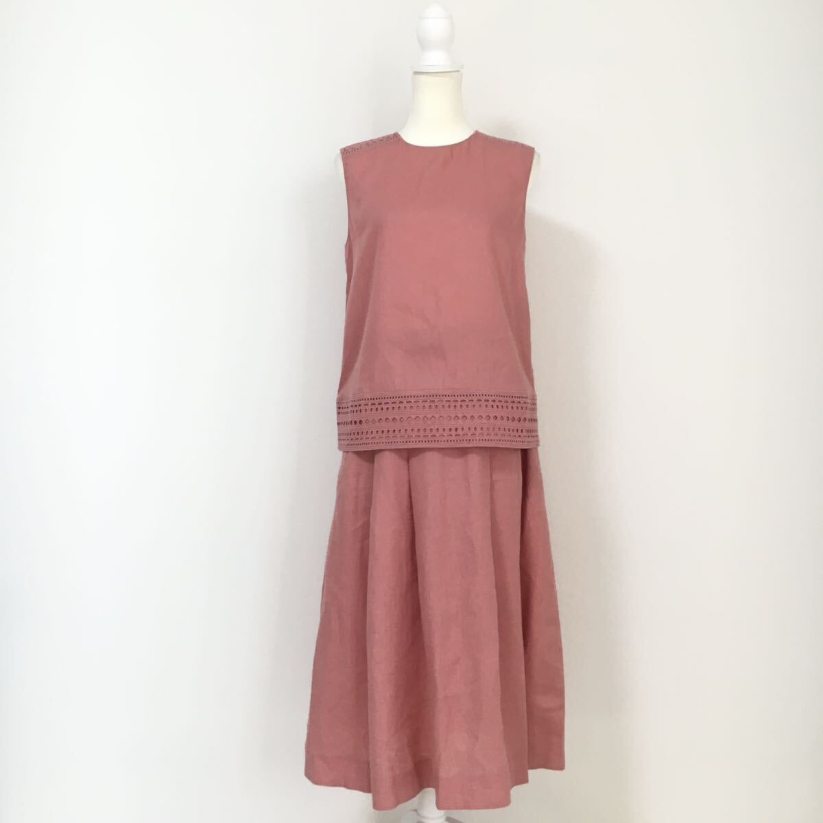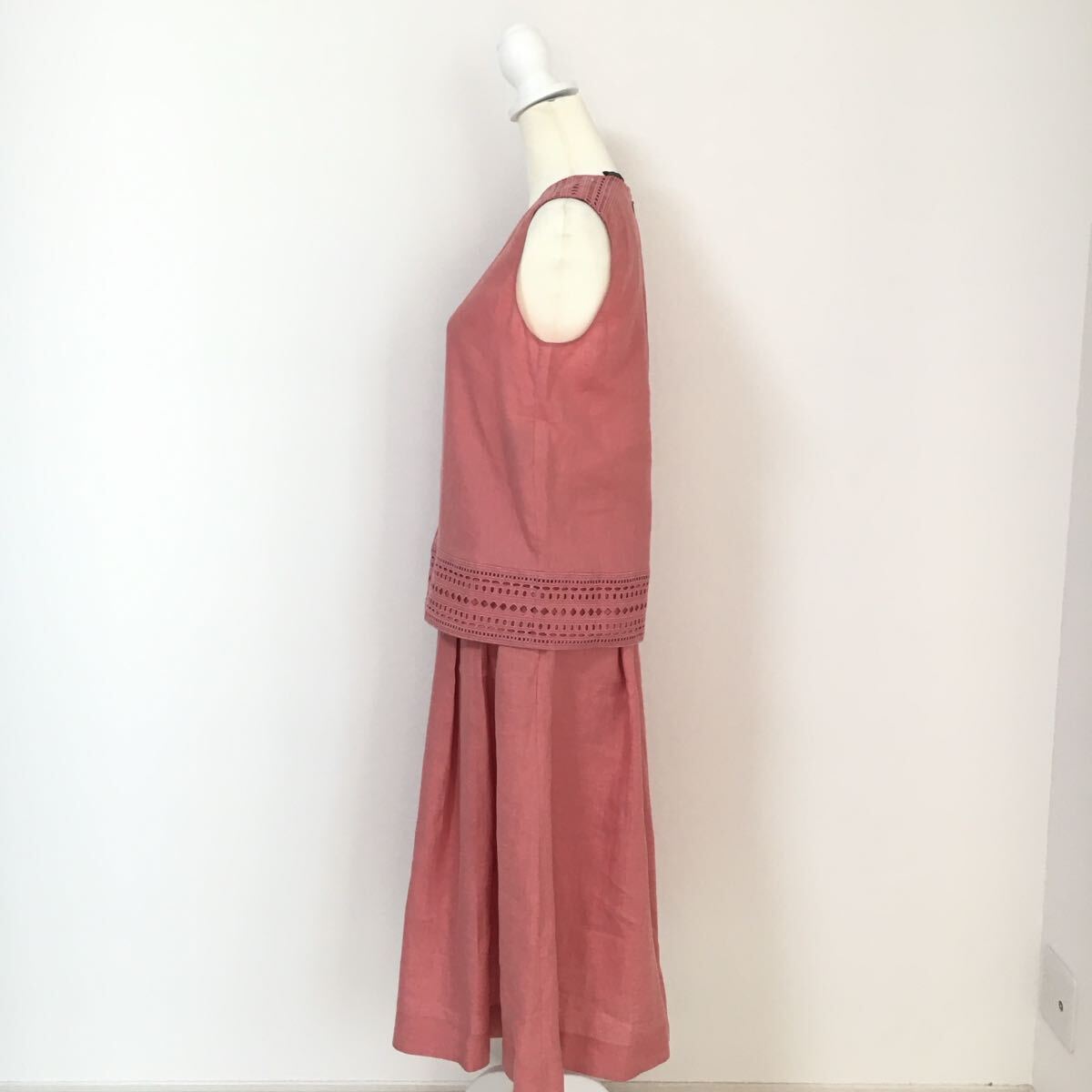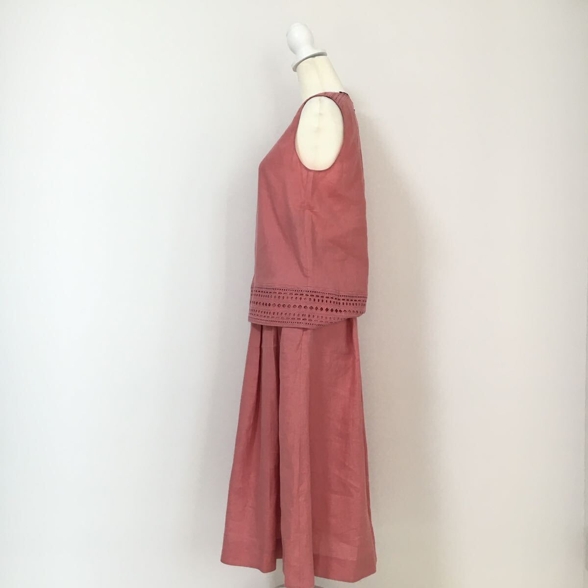 美しいカットワークのデザインが素敵なリネンセットアップです。