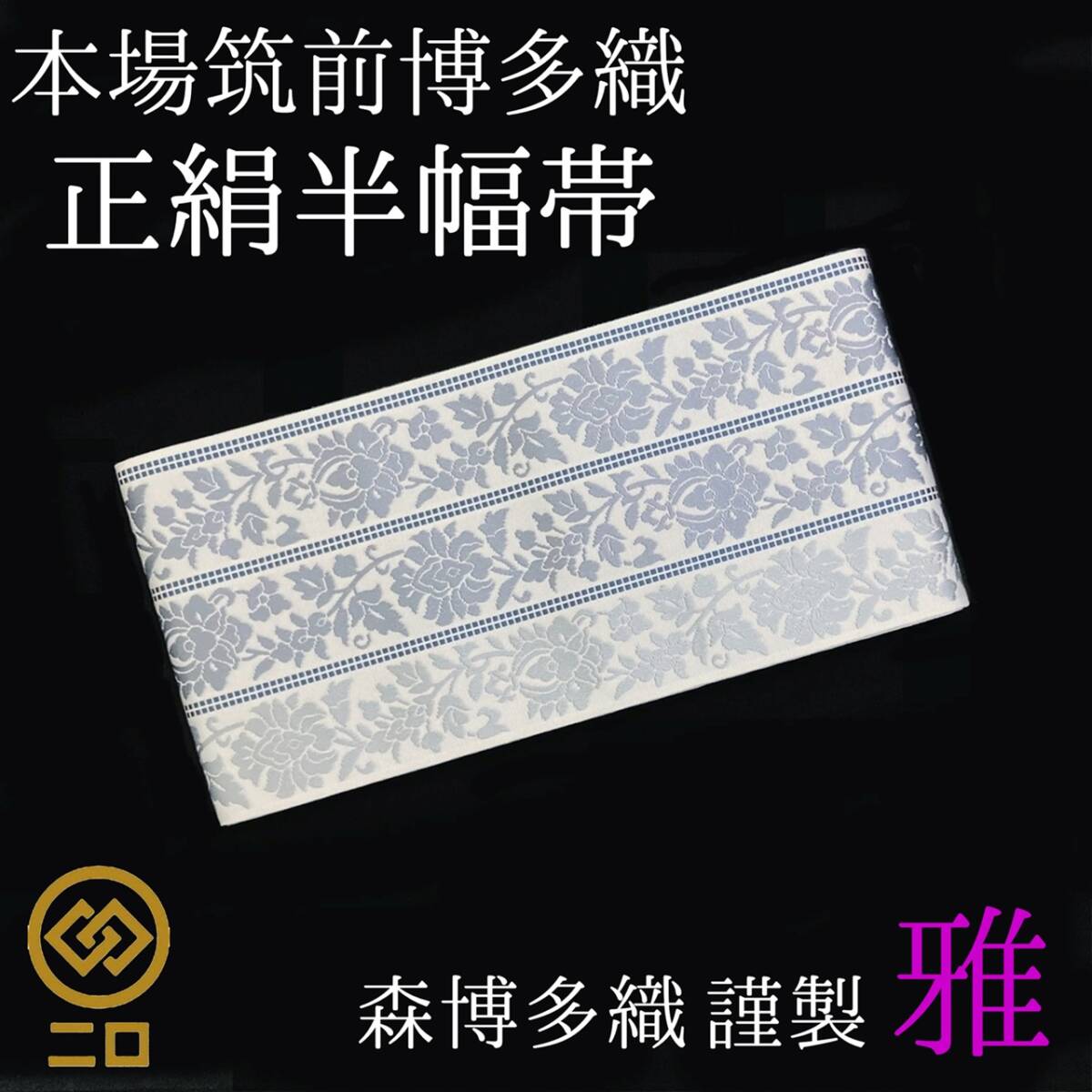 【送料無料】 新品 未使用品 博多織 半幅帯 雅 森博多織 正絹 日本製 リバーシブル 長さ/3m78cm 和装 小袋帯 半巾帯 my04