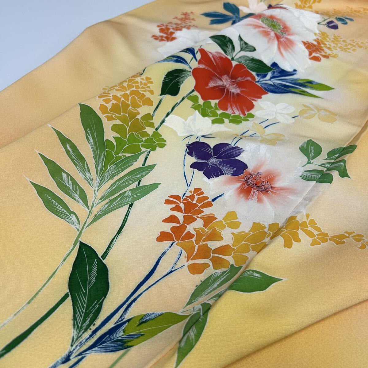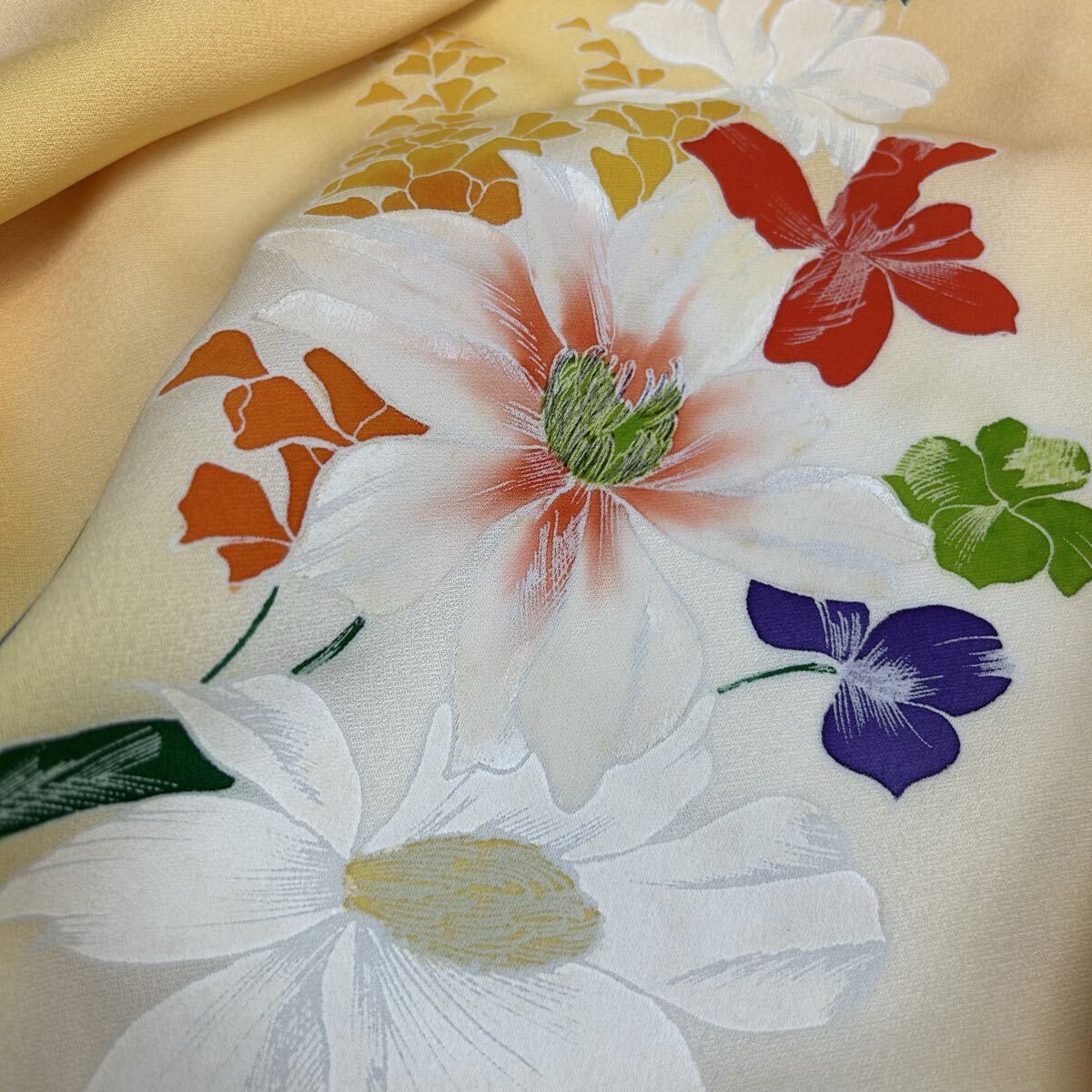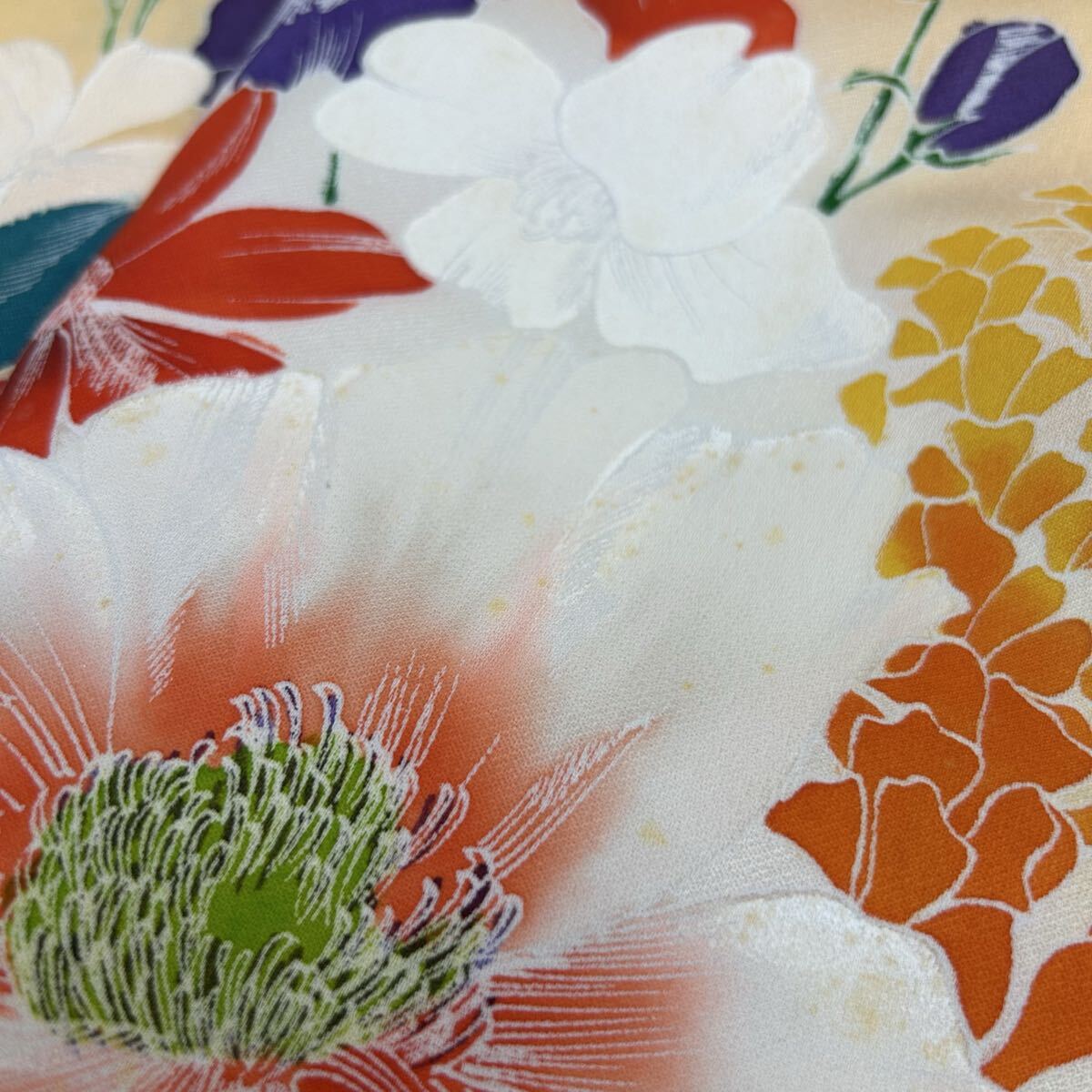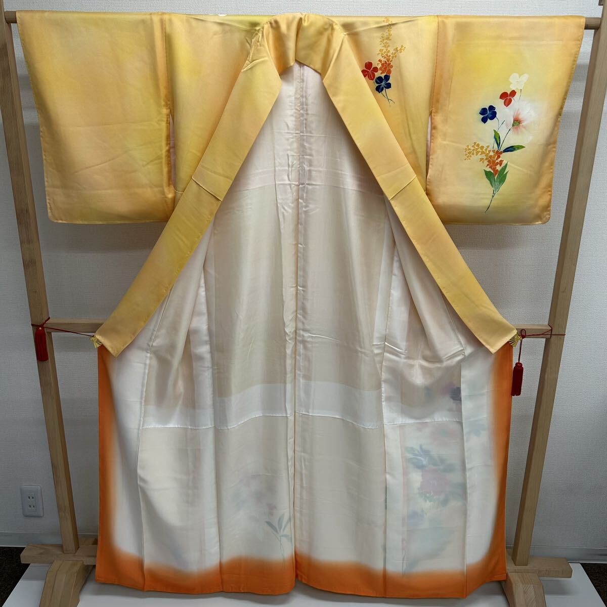 付け下げ 正絹 紋なし 大胆な染めの花 袷 着物 F-2240