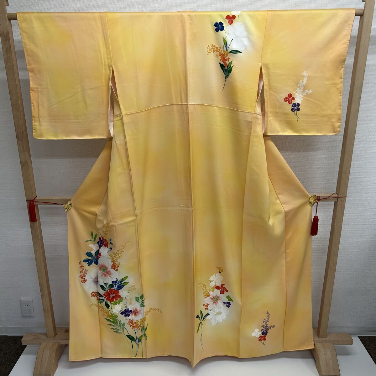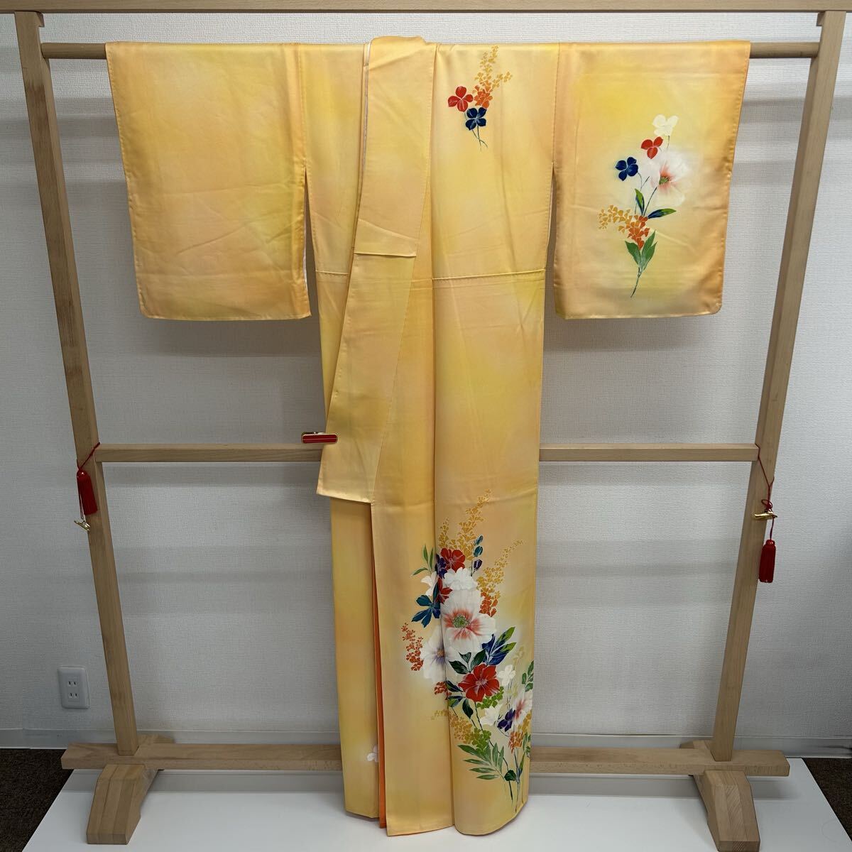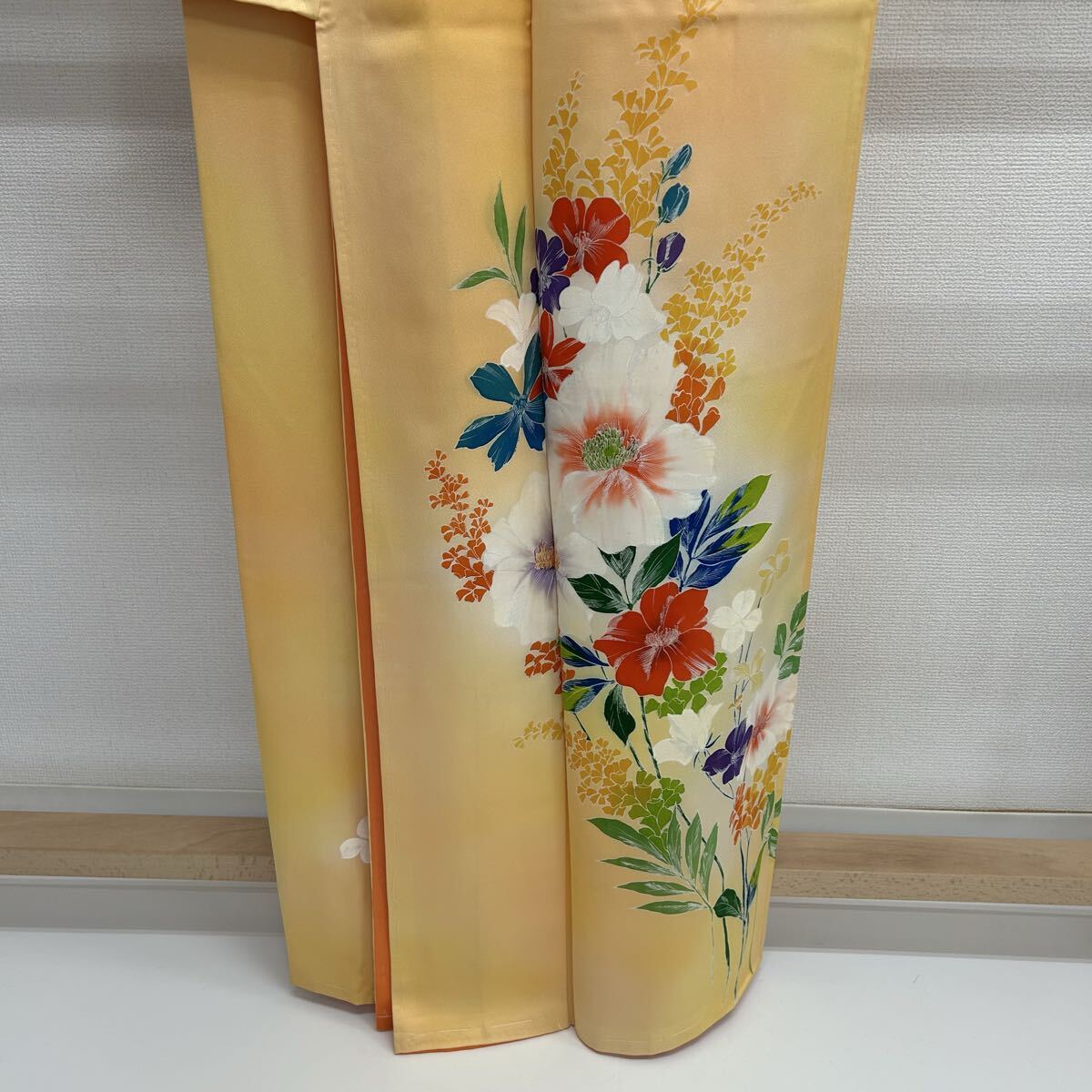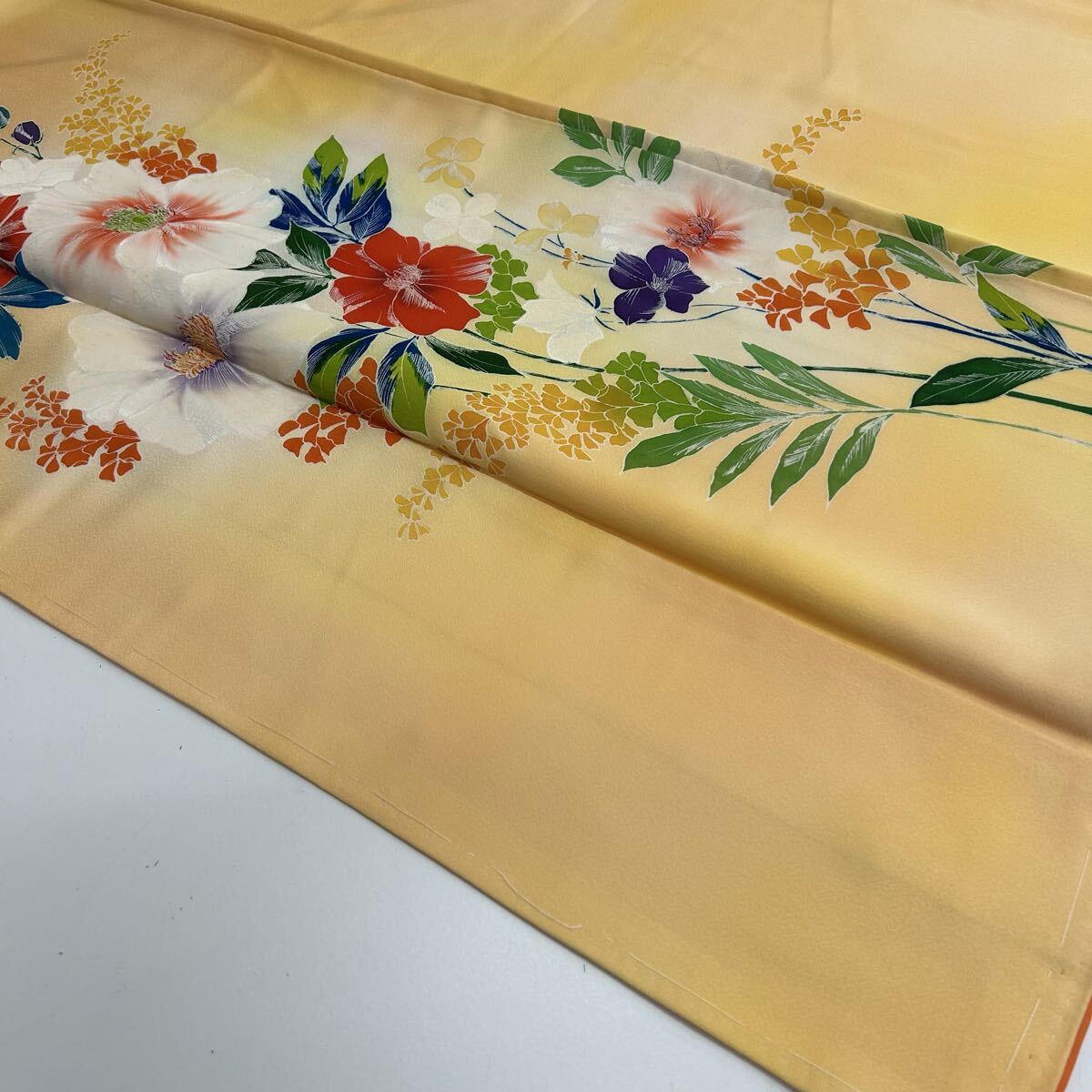 付け下げ 正絹 紋なし 大胆な染めの花 袷 着物 F-2240