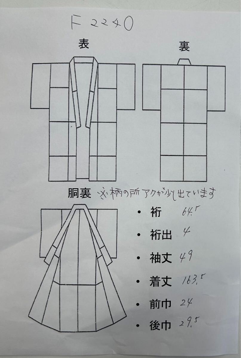 【寸法】cm 身丈は肩からの計測