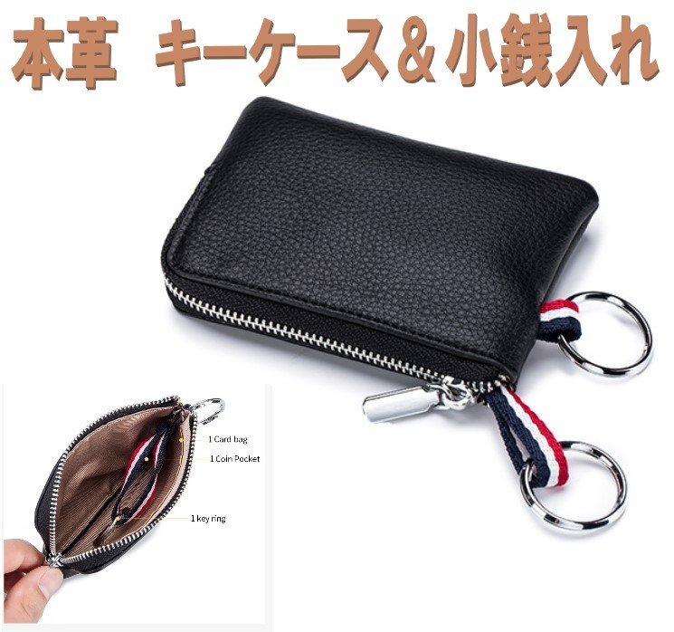 ミニポーチ ミニ財布 ブラック カードケース キーケース 小さい財布 小銭入れ コインケース 財布 コンパクト財布 牛革 本革