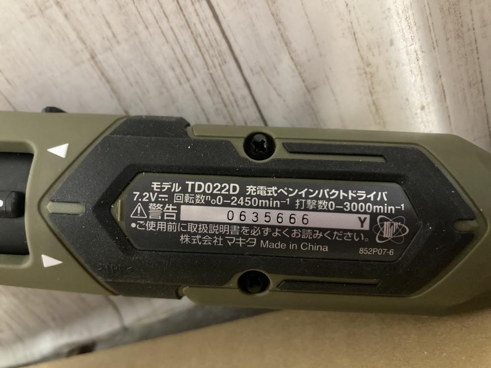 マキタ ■商品名 7.2V充電式ペンインパクトドライバ ■型番 TD022DSHXO |
