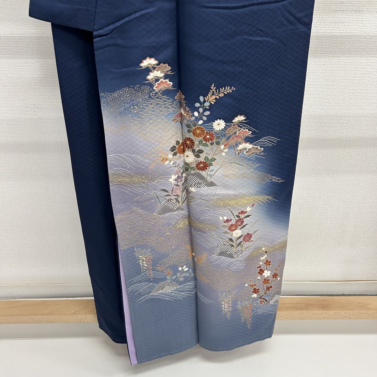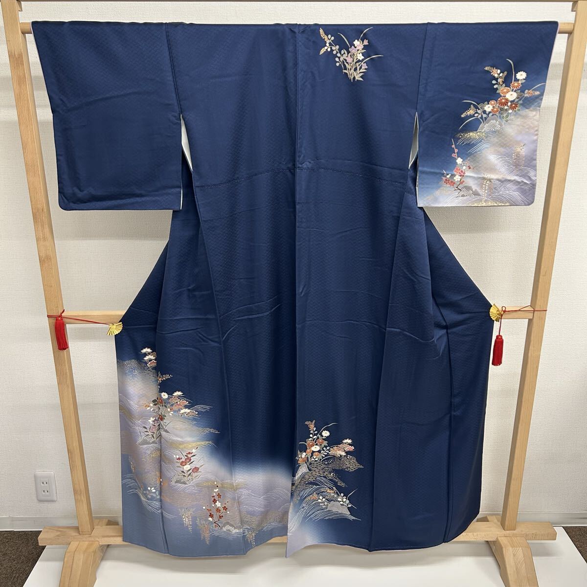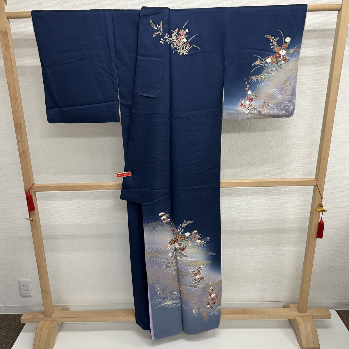 付け下げ 正絹 紋なし 美しい染めの花 袷 着物 F-2243