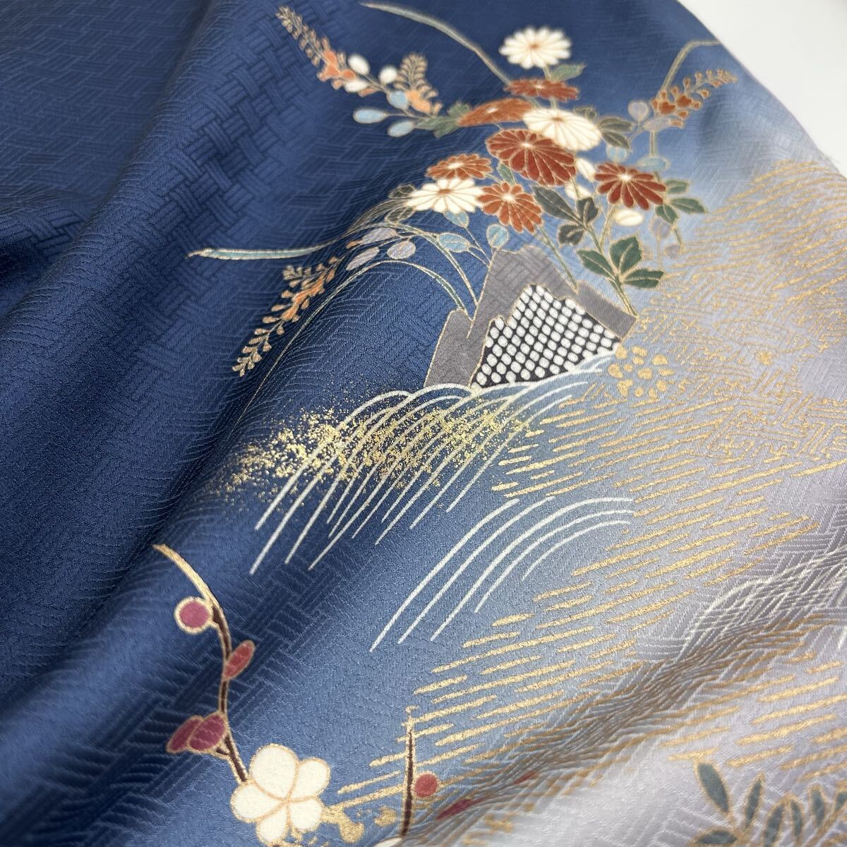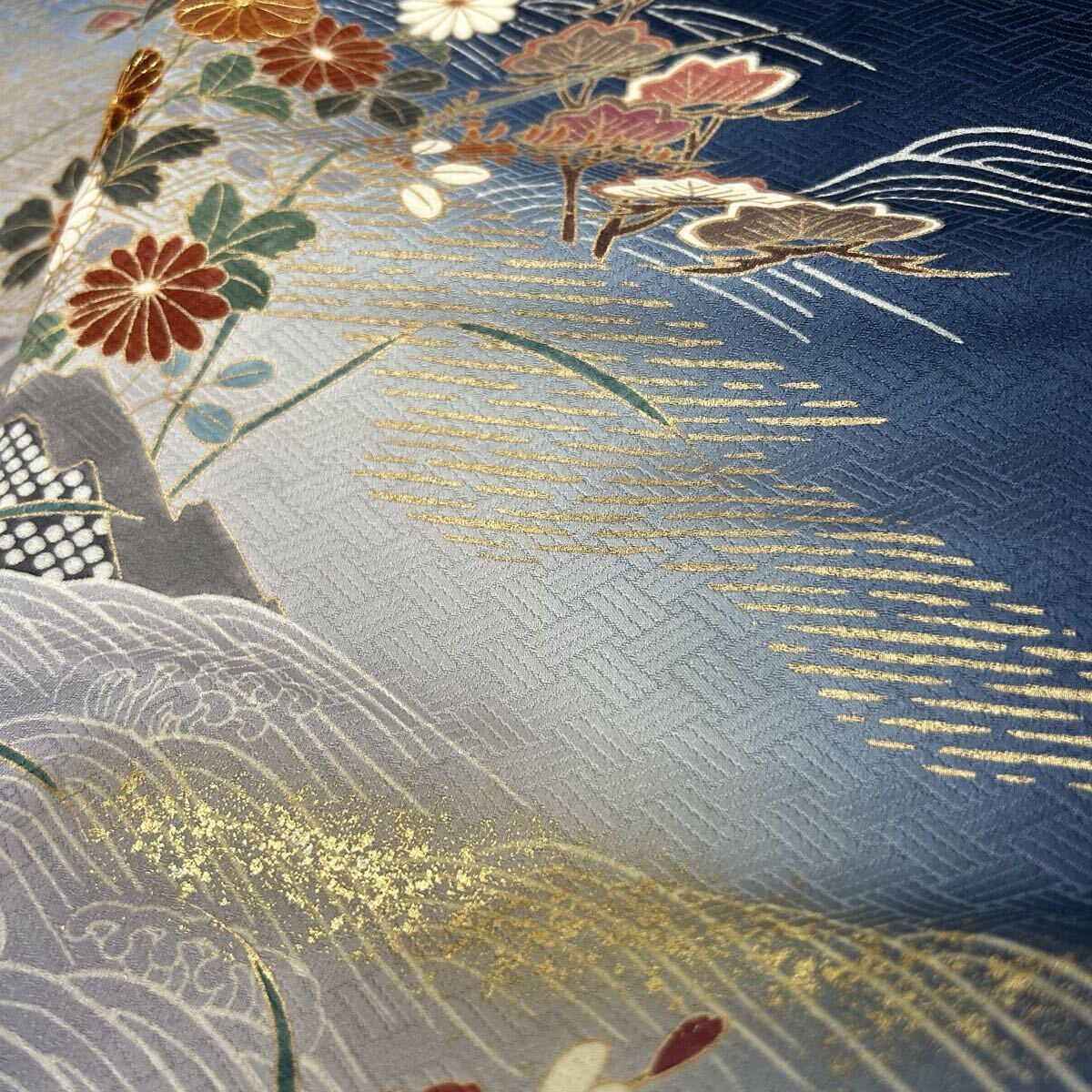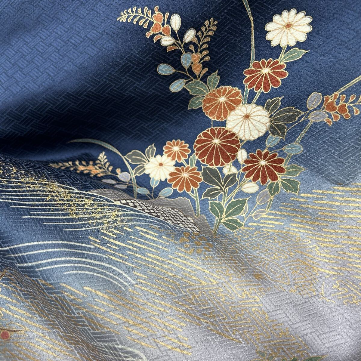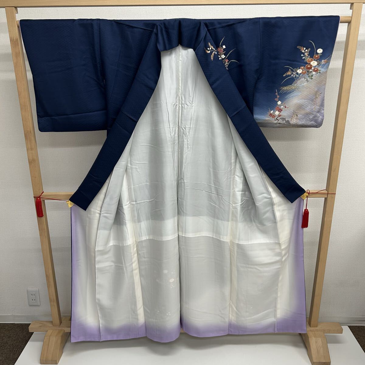 付け下げ 正絹 紋なし 美しい染めの花 袷 着物 F-2243