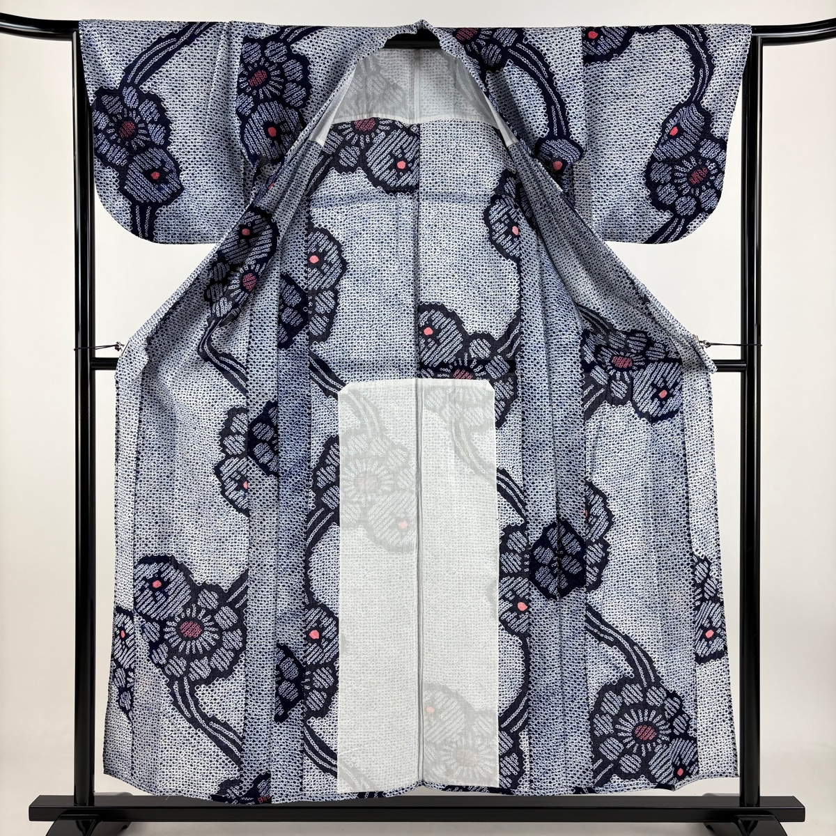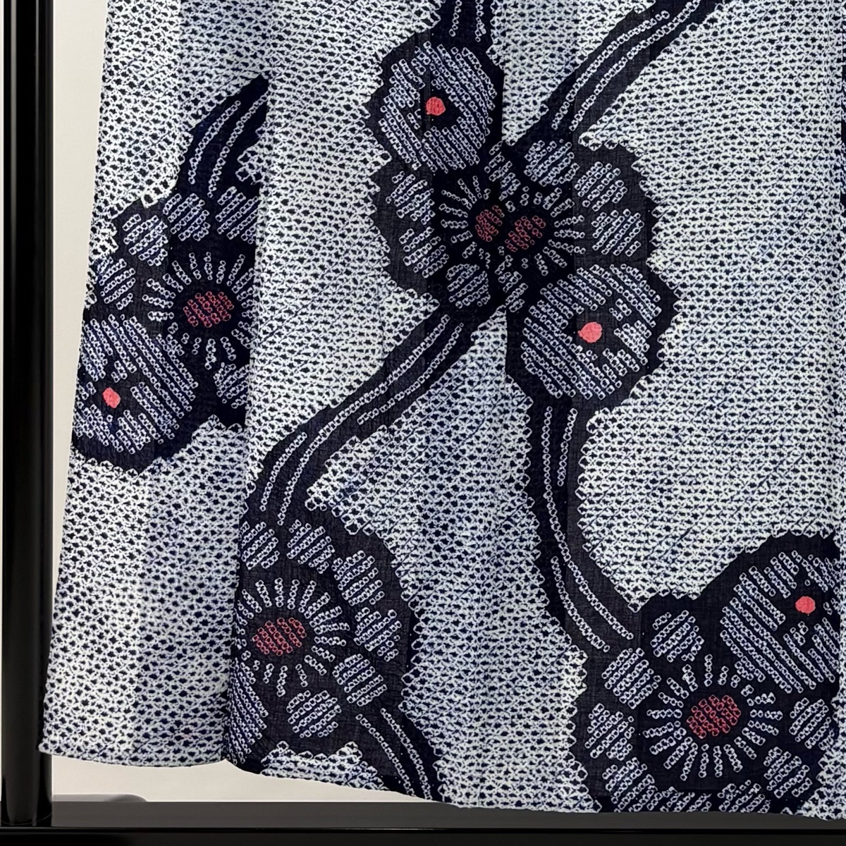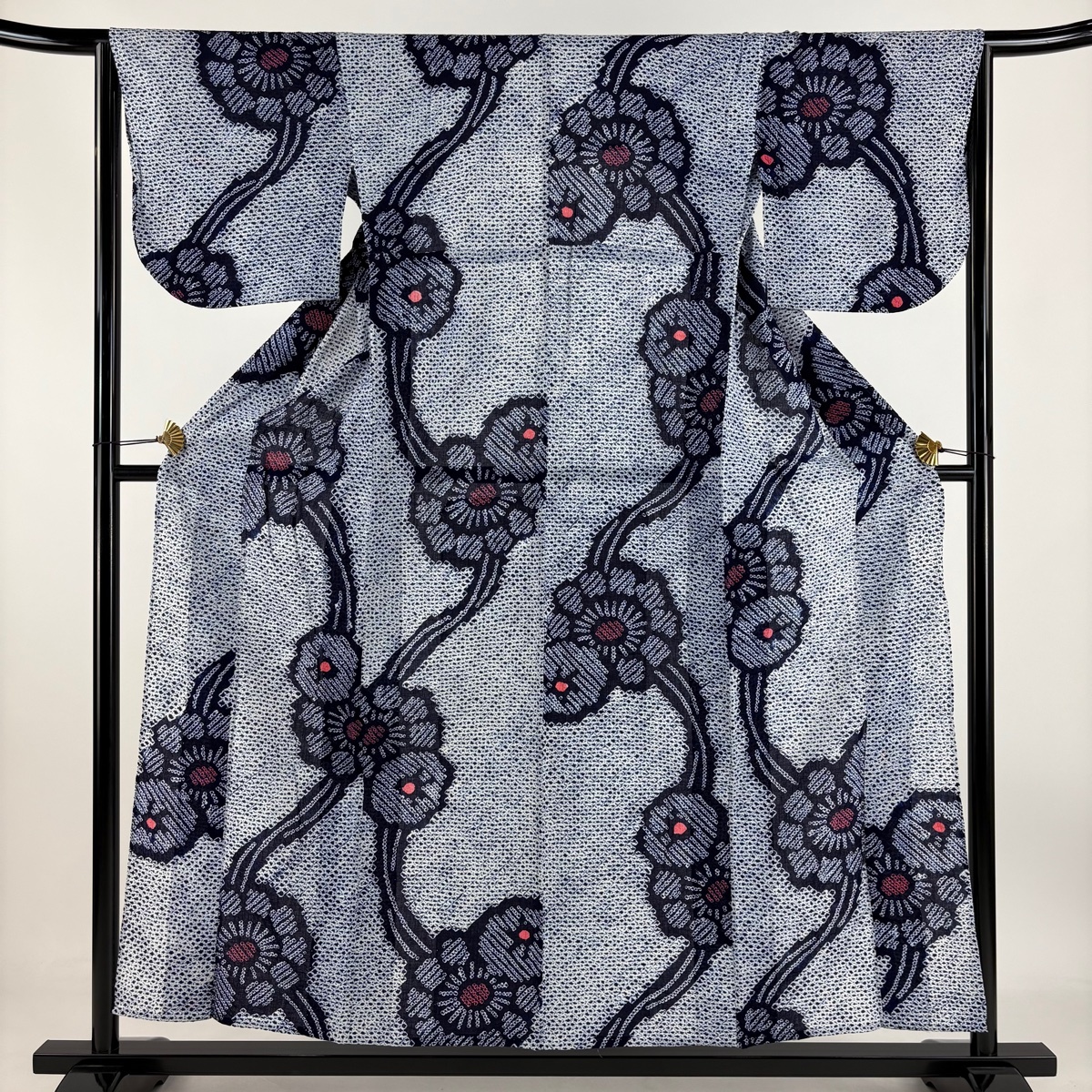 | 浴衣 名品 絞り浴衣 草花 紺色 身丈155 裄丈62.5 S 綿 【中古】 |