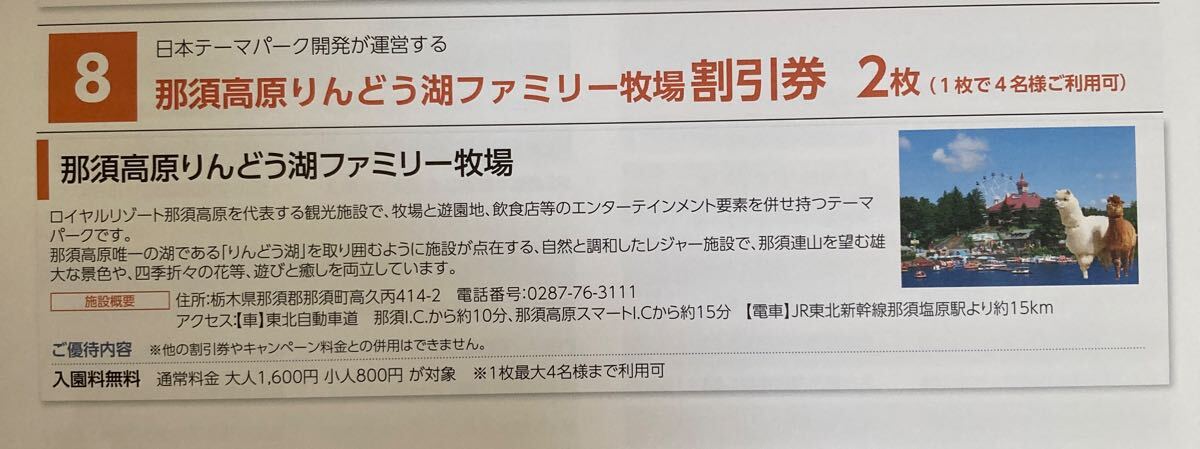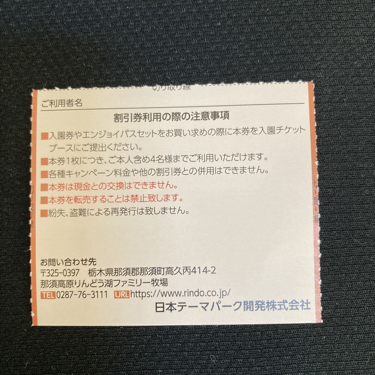 ◇◆《匿名配送無料》《株主優待》入園料無料【 那須高原りんどう湖ファミリー牧場割引券1枚 】最大4名 有効期限:2026.10.31◆◇