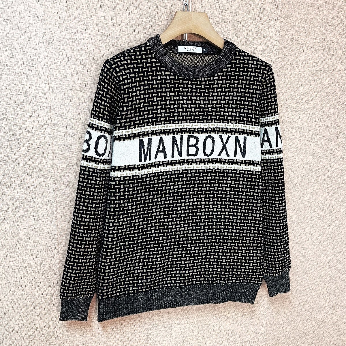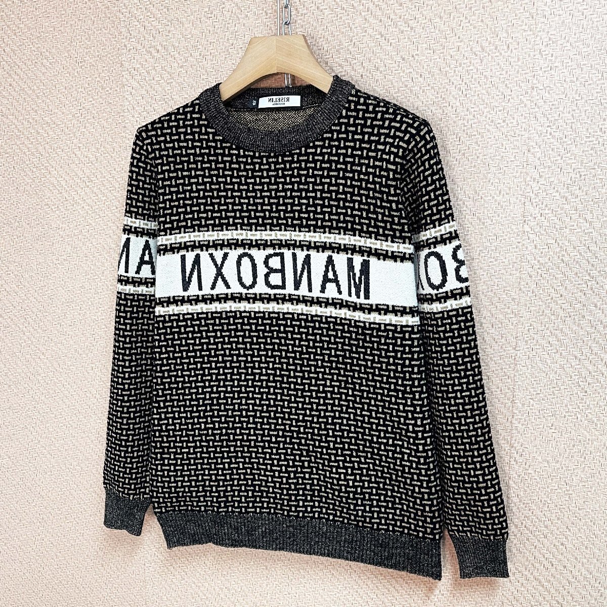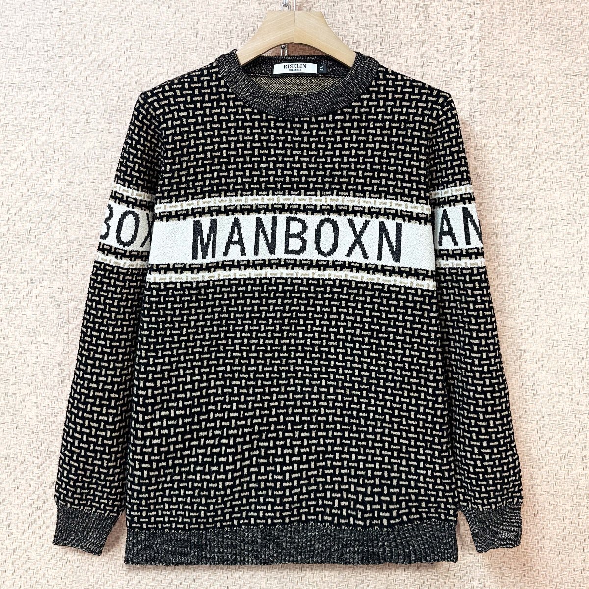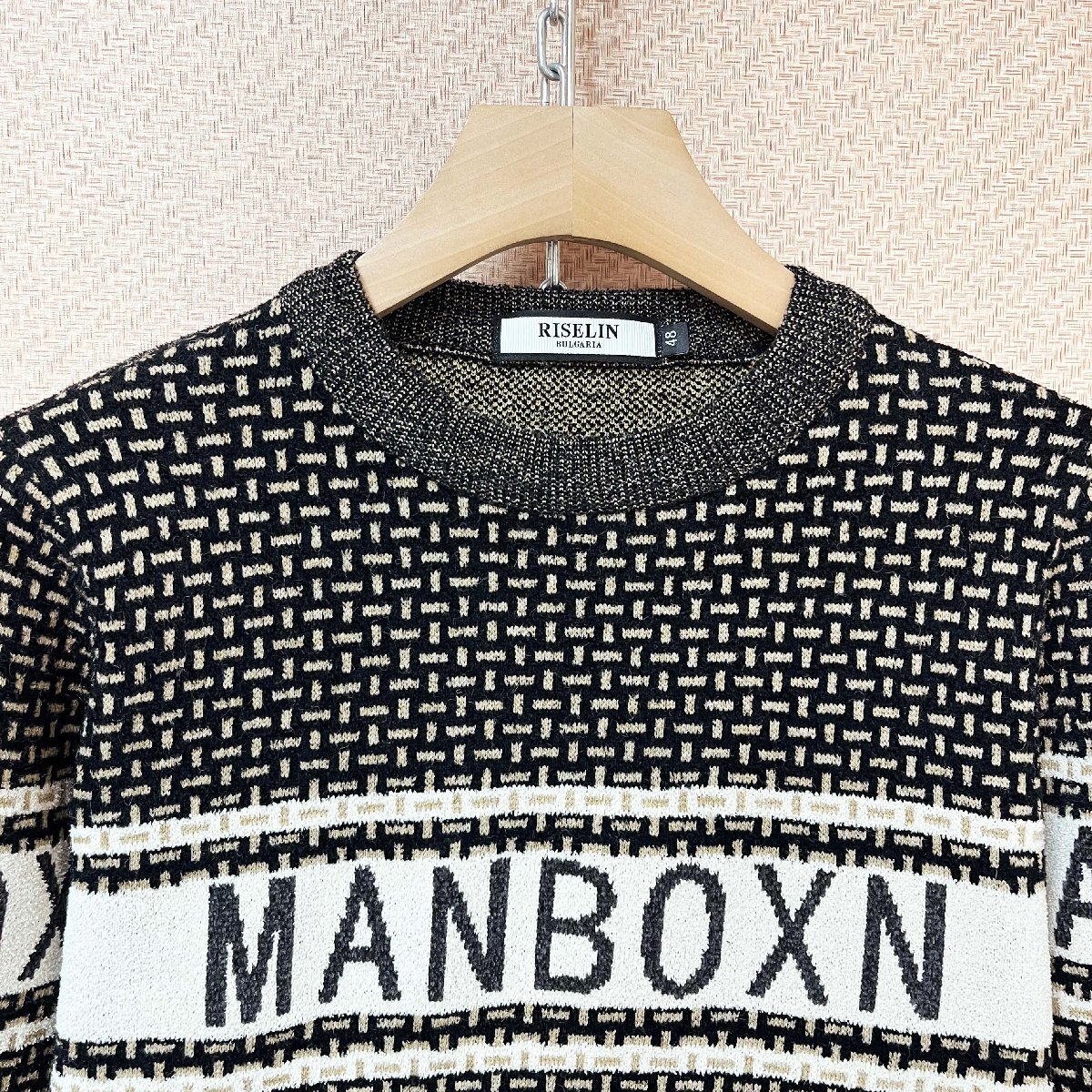 人気ヨーロッパ製※定価4万◆ブルガリア発※RISELIN セーター ウール混 柔らか 総柄 切り替え ニット 長袖 トップス スウェット 通勤 L/48