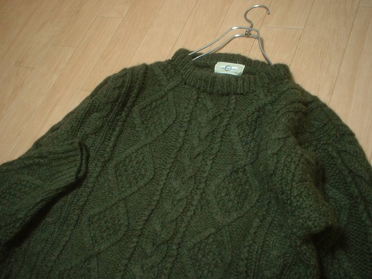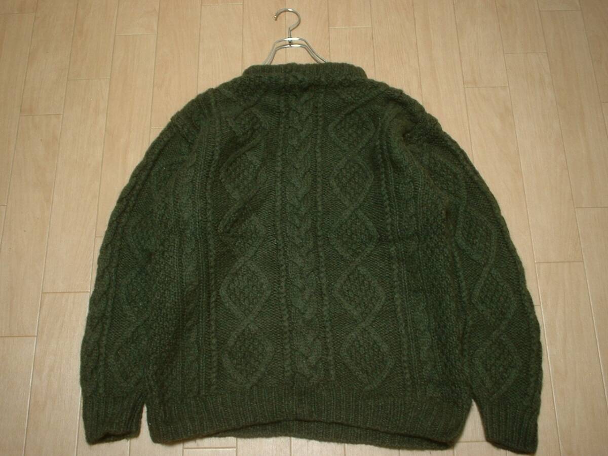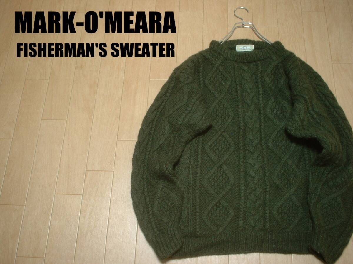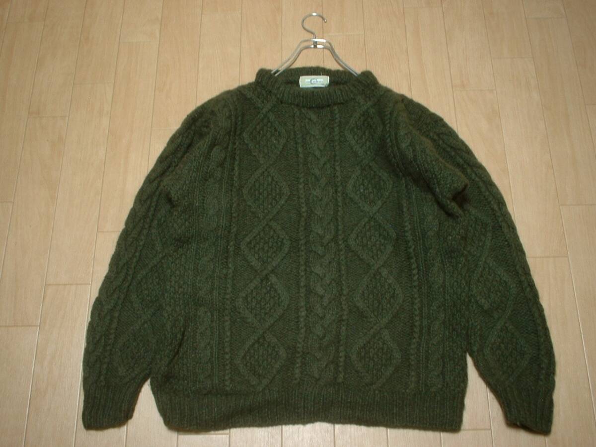 90sビンテージMARK-O'MEARAフィッシャーマンズウールセーター3Lモスグリーン深緑2XLクルーネックノルディックケーブルニットシェットランド