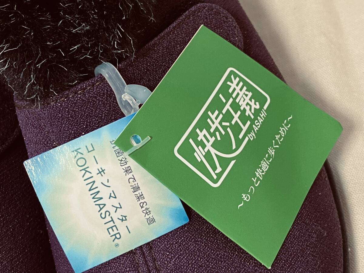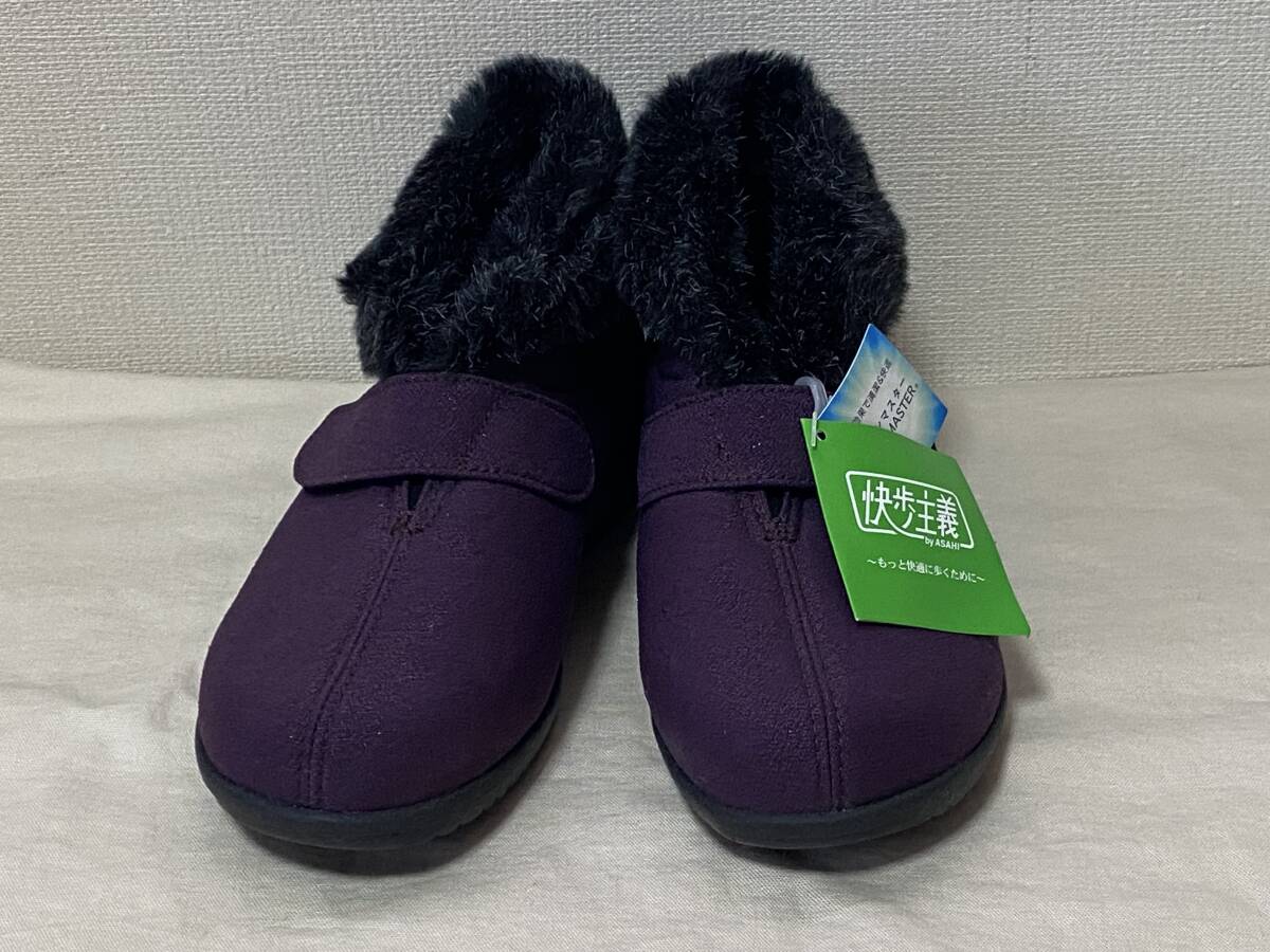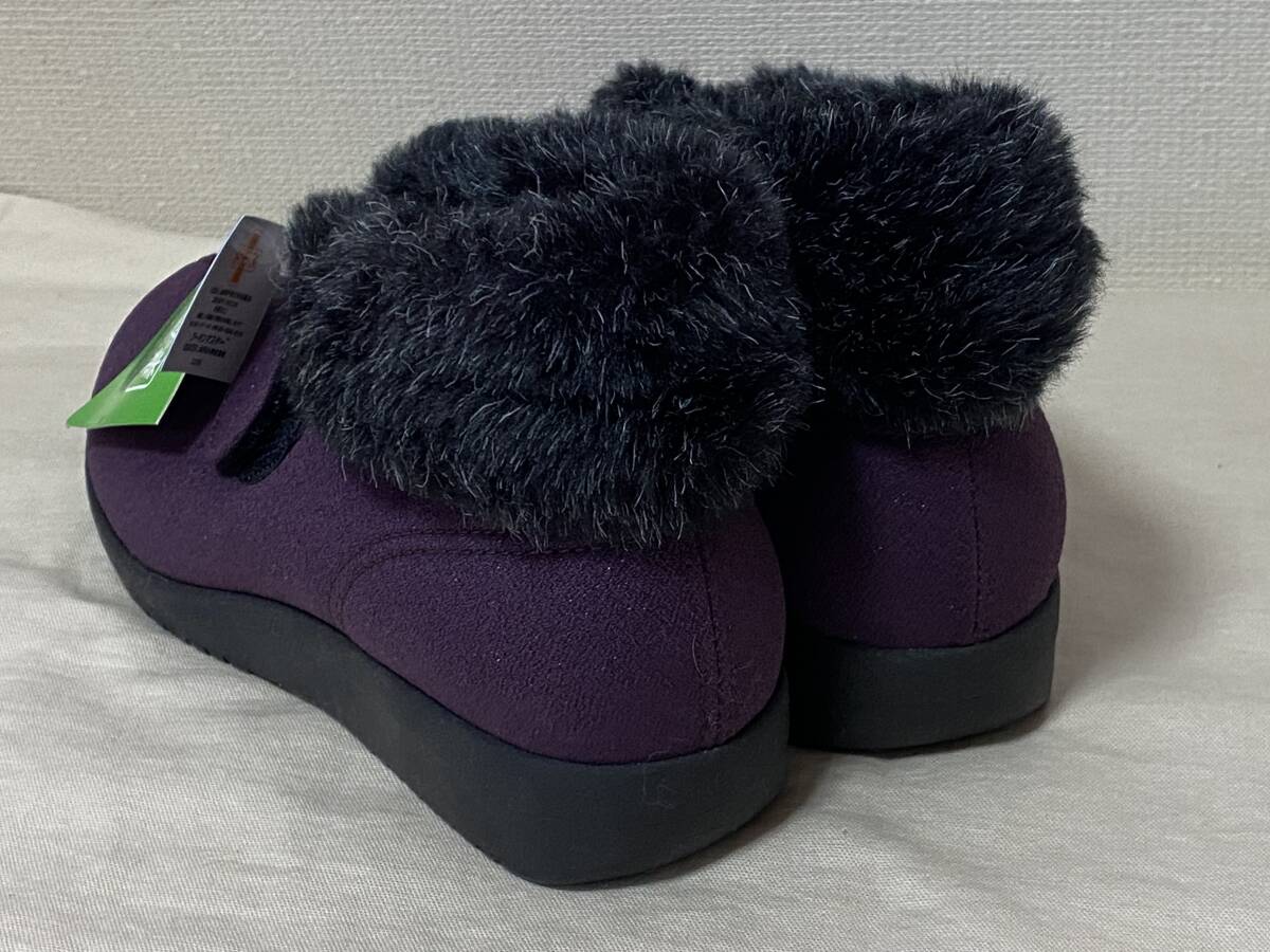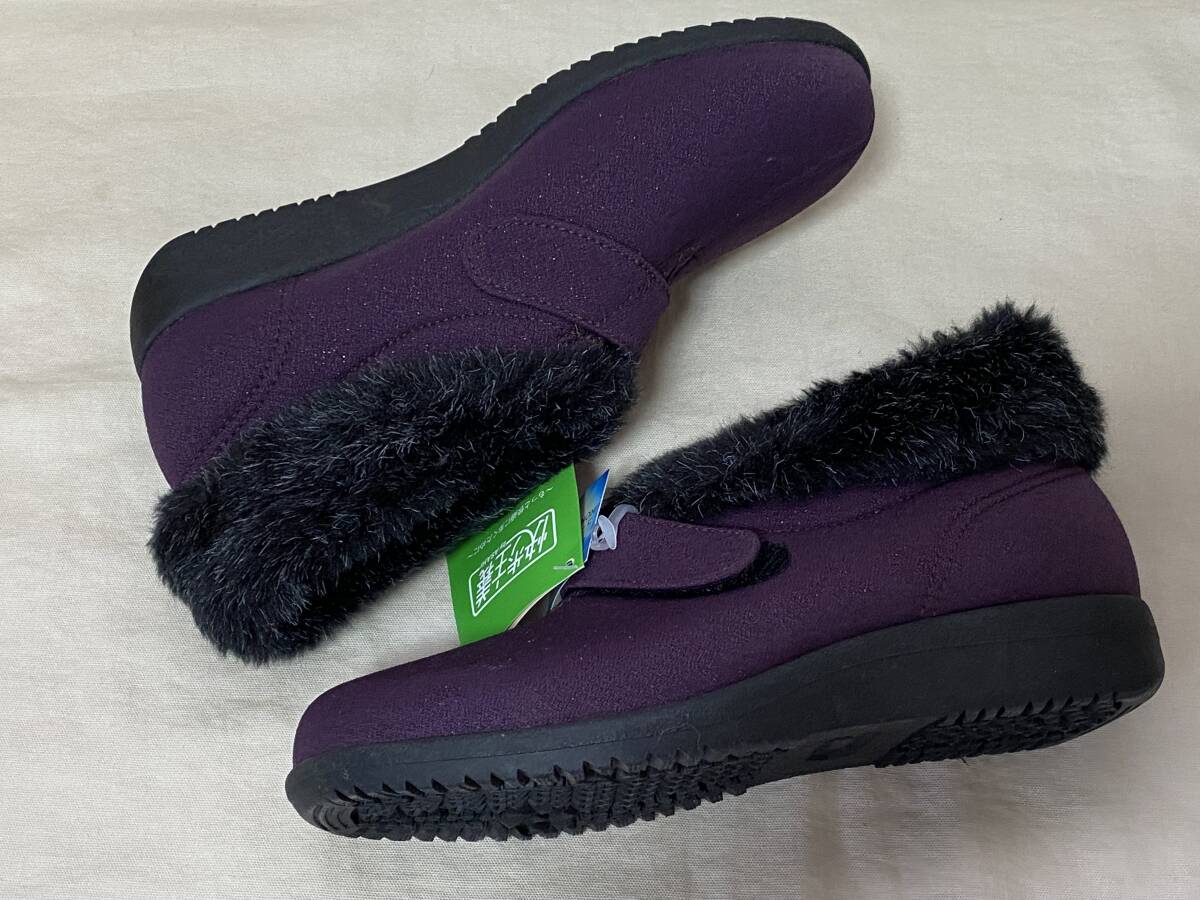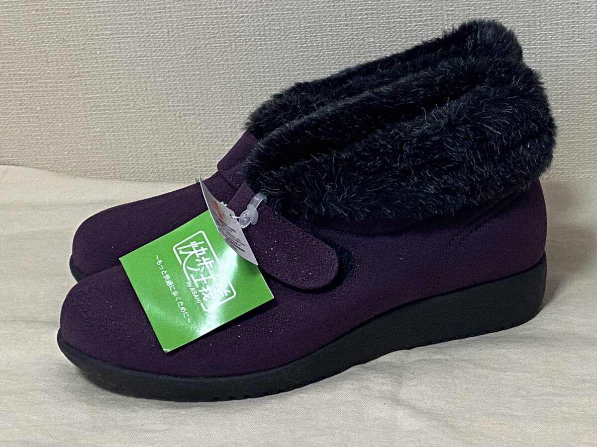 新品【快歩主義 by ASAHI/アサヒ】 婦人シューズ [日本製] 幅広3E 抗菌効果で清潔&快適”オーキンマスター” 履き口ベルトはマジックテープ式で ベルト下部分には一部 ゴムを使用しておりますので 脱ぎ・履きも楽々 本体のお色は暗めのパープルで 少しラメが入っております 履き口部分にはぐるりと ファーを使用しておりとても暖かです ★サイズ 22.5EEE ヒール高さ:約2.7cm |